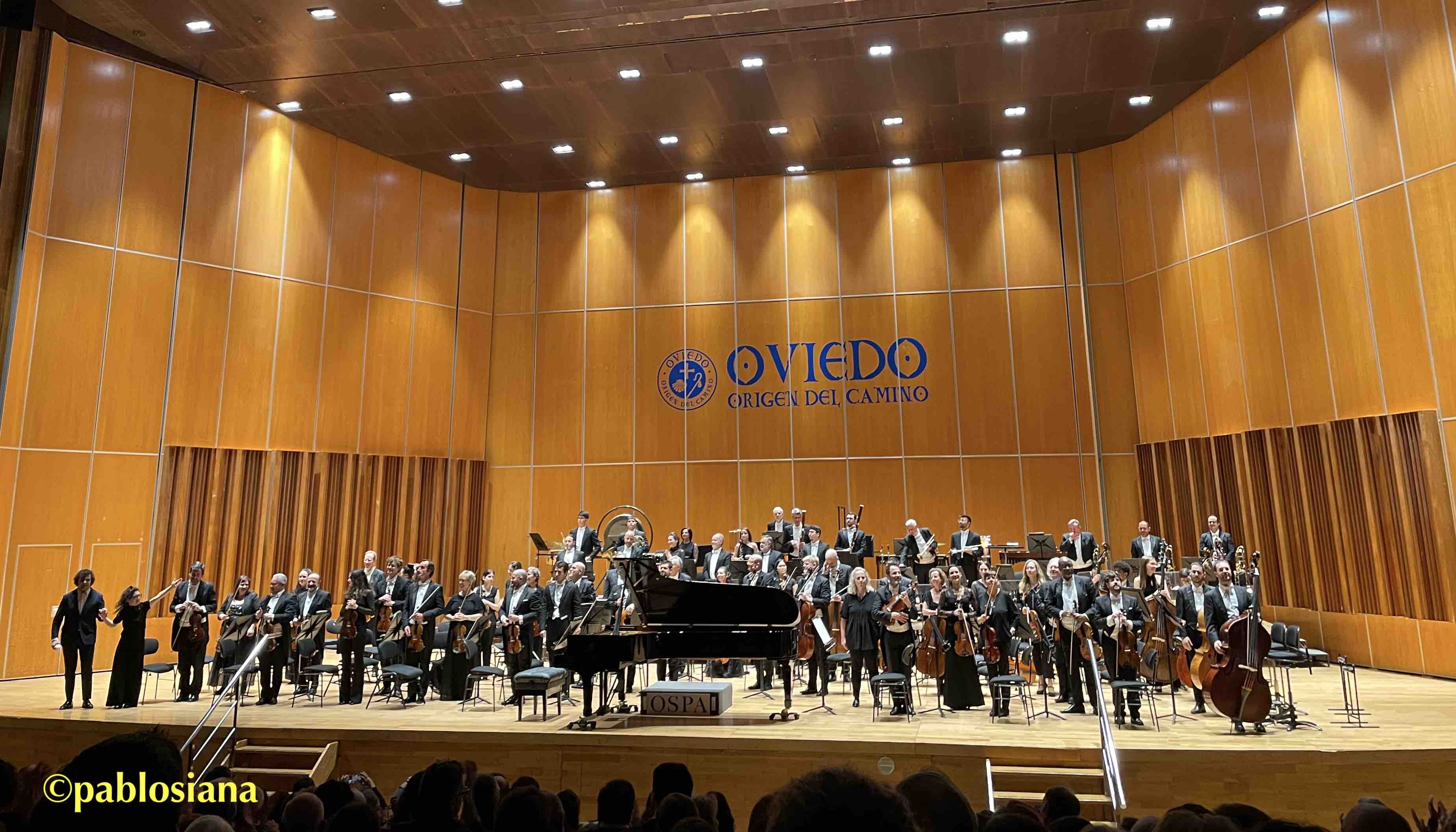 Don Ramón Sobrino nos explica que «El Concierto para piano nº 1 de Tchaikovsky (1874, con revisiones en 1879 y 1888), rechazado inicialmente por Rubinstein, fue estrenado por Hans von Bülow en Boston en 1875. En tres movimientos, Allegro – que tras la conocida introducción emplea melodías de Ucrania, Francia y Rusia –; Andantino-Prestissimo-Tempo I; y Allegro con fuoco – con forma rondó –, es obra de referencia para los grandes pianistas, reconocida por público y crítica», así que contando con una orquesta en estado de gracia, una directora excelente concertante y un solista reconocido, el éxito estaba asegurado. Nunca hay dos interpretaciones iguales y he perdido la cuenta de las veces que lo he escuchado en directo, pero la de Martín García con Venditti y la OSPA no ha decepcionado. Siempre bien balanceado con la orquesta desde el potente inicio, sus solos fueron limpios, contrastando los súbitos que pasan del momento eufórico a la calma necesaria, sonoridades rotundas y cristalinas, encajes perfectos en los tempi que fueron valientes en los movimientos extremos, junto a la delicadeza «con poso» del andantino central que solo tiene de semplice el calificativo, porque más allá del virtuosismo necesario en los rápidos, el transmitir sentimientos siempre se hace con pocas notas pero bien tocadas. Y caer en la tentación del «primero» del ruso es fácil pero contener el exhibicionismo es una virtud. ¡Bravo Martín!.