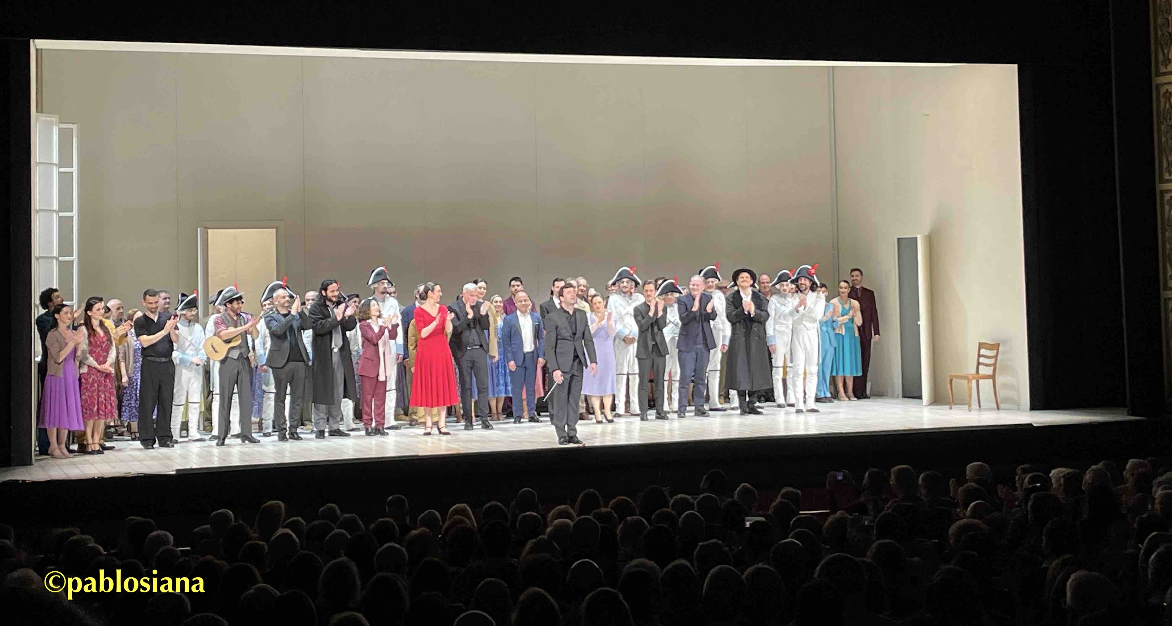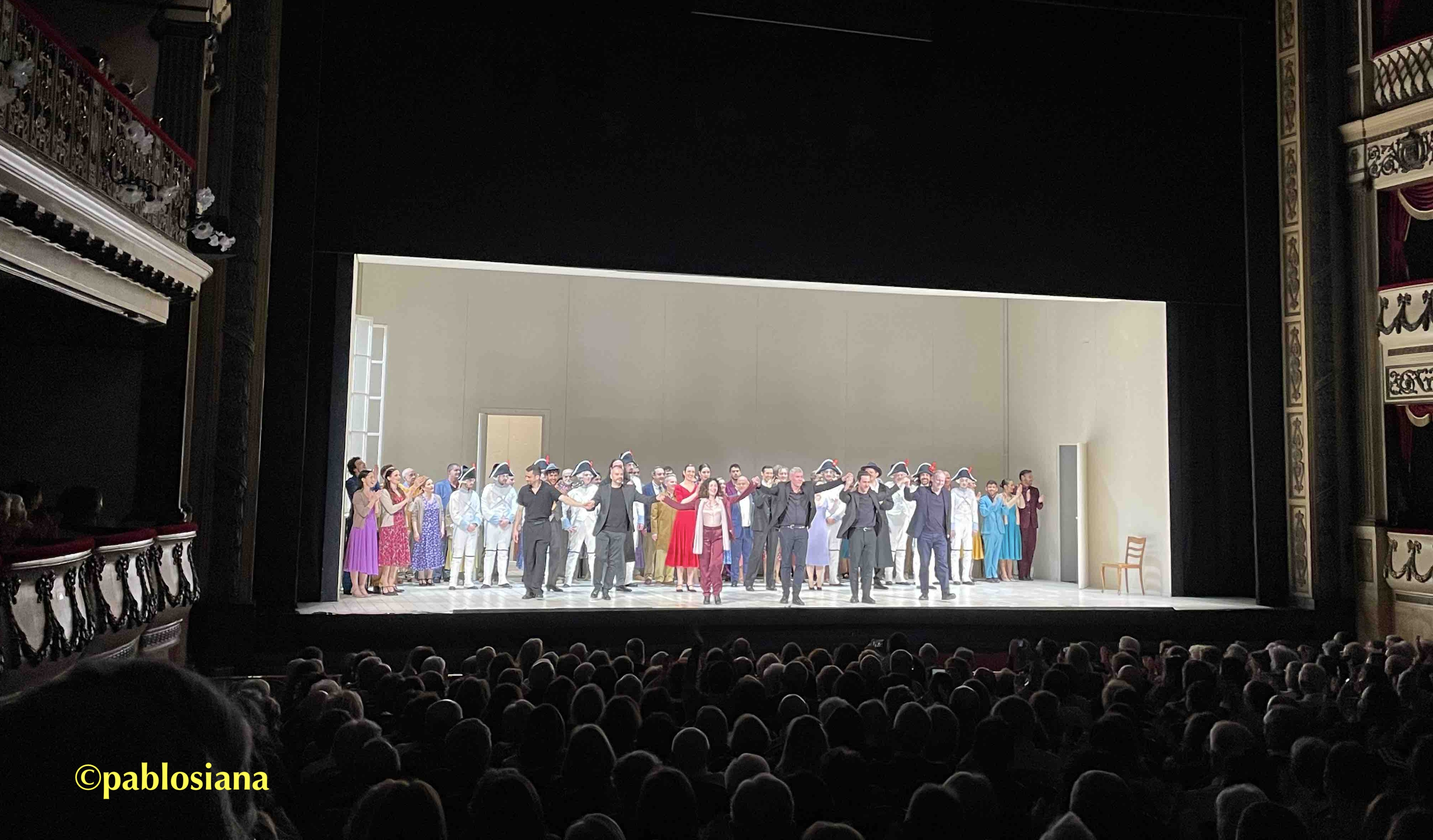 El decorado se ve limpio y concentrado en los actores para que nada distraiga, pues siempre funciona bien el aforismo de “más e menos”, unido a una iluminación cálida que me recordó al mejor Sagi. No puede faltar el cuerpo de baile con cuatro parejas que dieron color y salero, lo que redunda y añade el calificativo de “grande” a esta producción internacional, a la que se sumó el coro titular del festival, la “Capilla Polifónica de Oviedo” que salvo un arranque dubitativo en la “Jota de los estudiantes” volvieron a funcionar en cada acto, estudiantes, vecinos y soldados, destacando especialmente el coro de las costureras (aunque no suspirasen el “Camisón” como el propio Barbieri indica en su manuscrito, en una acotación que me hizo llegar Ramón Sobrino).