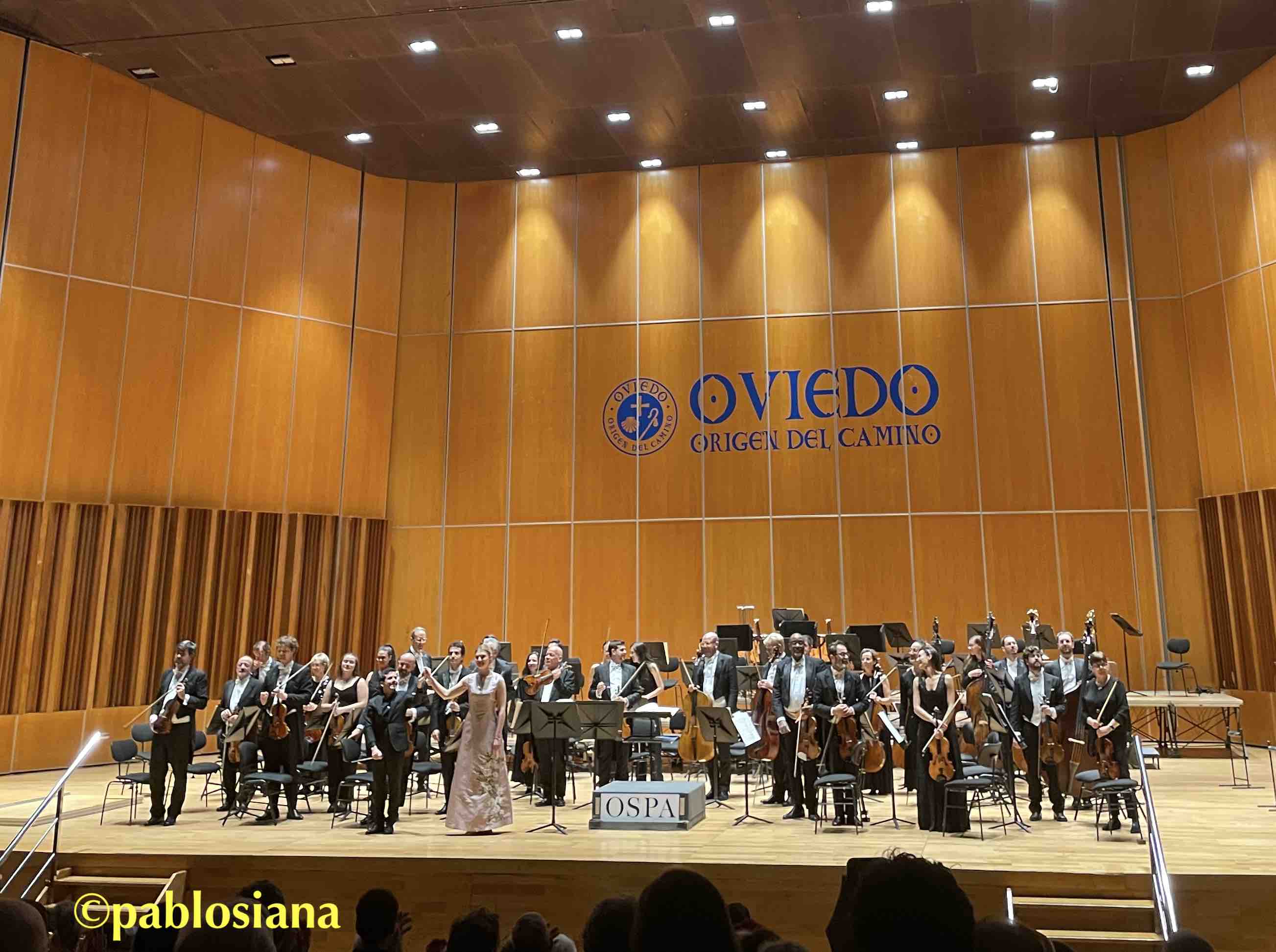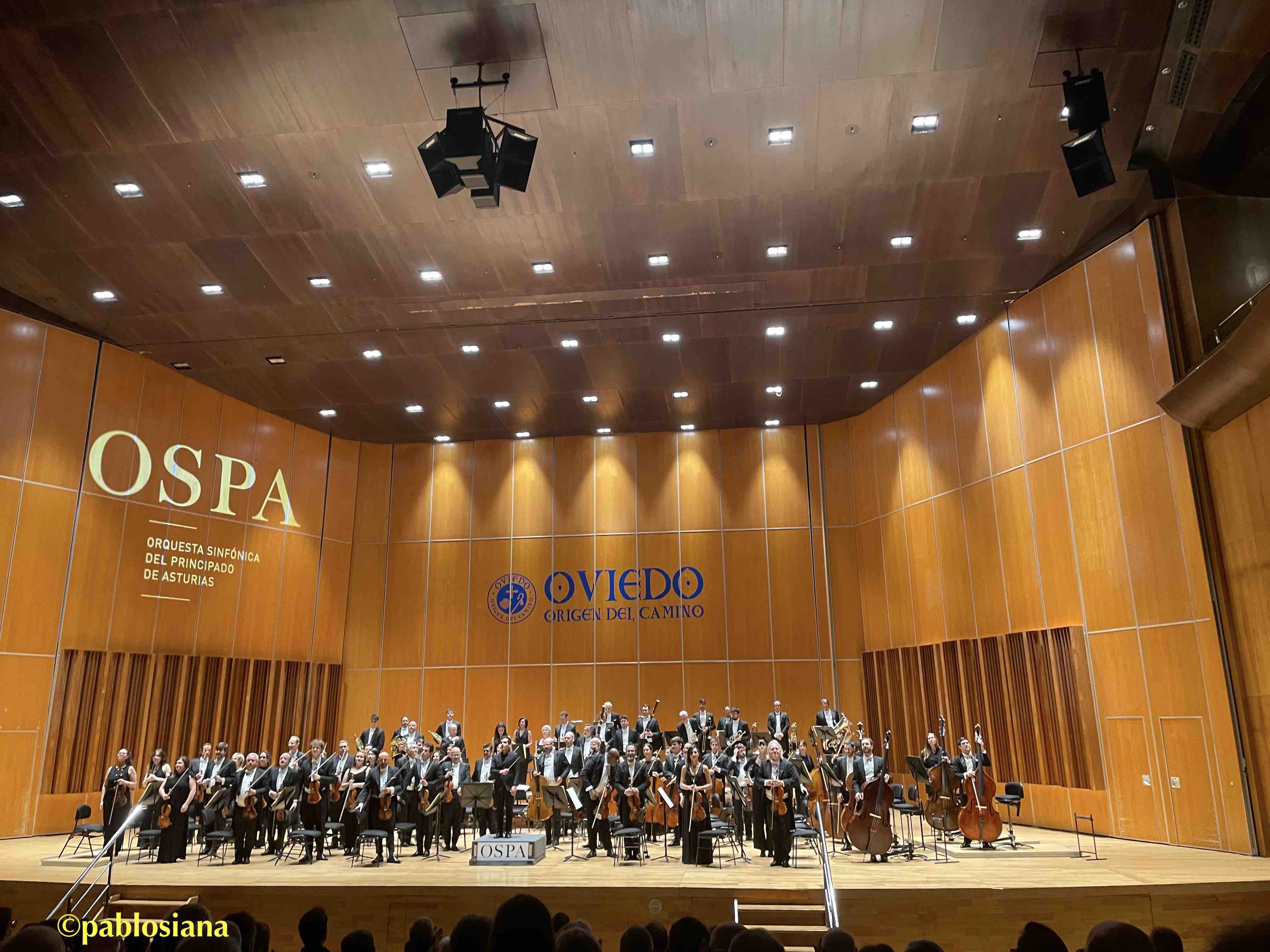 El ciclo Les Illuminations op. 18 de Britten (estrenado el 31 de enero de 1940 por la soprano suiza Sophie Wyss) está compuesto para soprano o tenor solista con orquesta de cuerda, usando nueve canciones de la colección homónima escrita por Arthur Rimbaud que inspiraron al compositor inglés nada más leerlas. La OSPA, este viernes con Jordi Rodriguez de nuevo como concertino invitado (seguimos esperando la convocatoria de la plaza titular tan necesaria) volvió a sonar perfecta, empastada, rica, con los distintos solistas de cada sección que fueron completando una interpretación perfecta de Baikoff , verdadero caleidoscopio lírico repleto de matices, con una voz de emisión clara, sentida, de enorme expresividad acorde con cada poema y una perfecta dicción en la lengua de Molière, que pudimos seguir desde el programa de mano aunque hubiese preferido se proyectaran, gustándome especialmente en la cuarta canción (Realeza: Allegro maestoso), una impactante quinta (Marina: Allegro con brio) y la última (Partida: Largo mesto), auténtica tormenta emocional mientras la cuerda “imitaba” en todos los registros los silbidos, rasgueos de guitarra, arpegios y fraseos donde Britten refleja sobre el pentagrama toda la carga que Rimbaud (sólo él comprende una realidad alucinada) plasmaría con alucinaciones, sueños y magia hecha música de nuestro tiempo. Más allá de la última frase «Départ dans l’affections et le bruit neufs!» (¡Partida hacia el afecto y el ruido nuevos!), mucho afecto y poco ruido. Un triunfo que logró varias salidas de la soprano y el maestro portuense ante los largos y merecidos aplausos de un público fiel que no abandona nuestra orquesta ni en días de tragedias o diluvios.