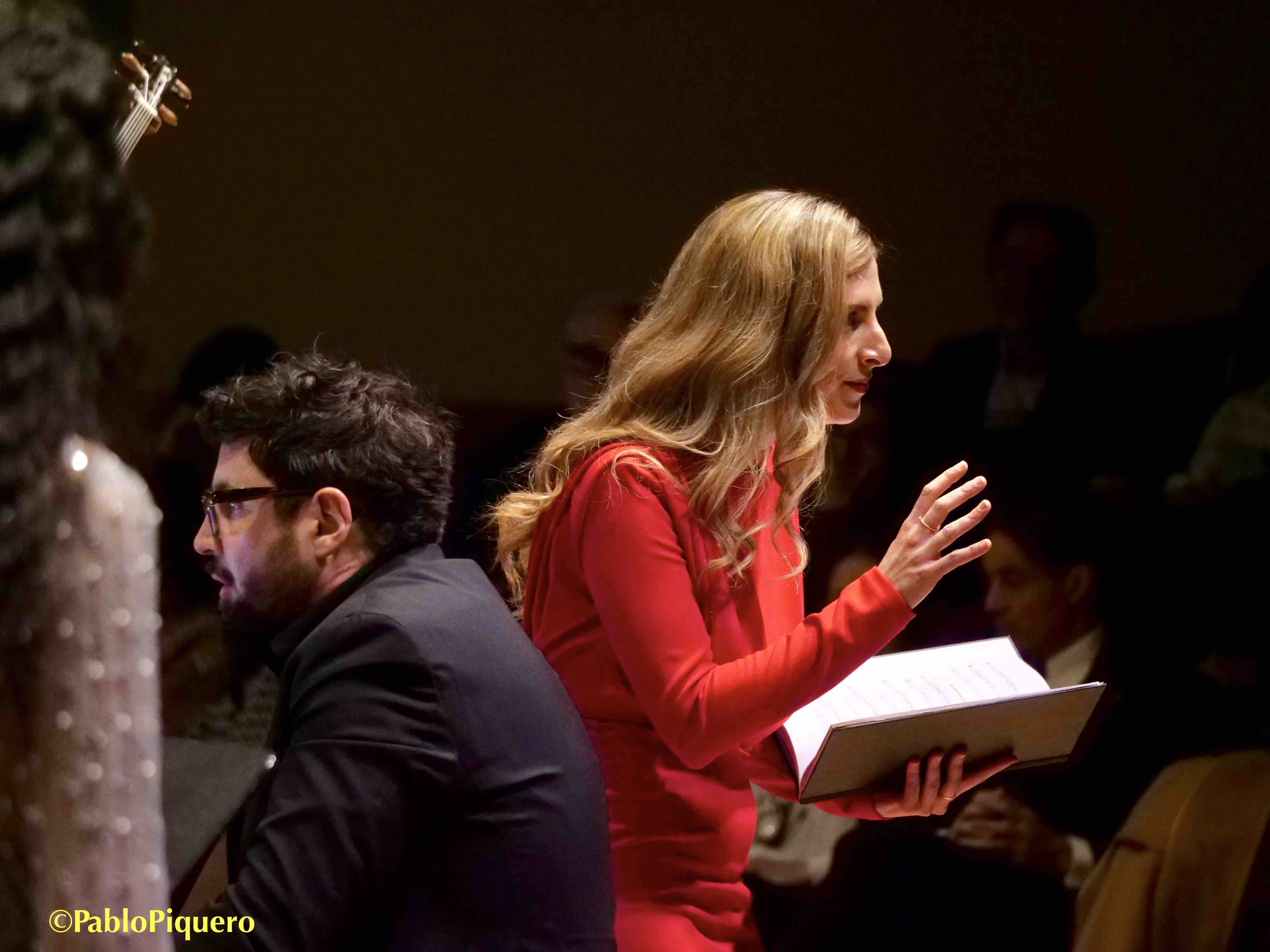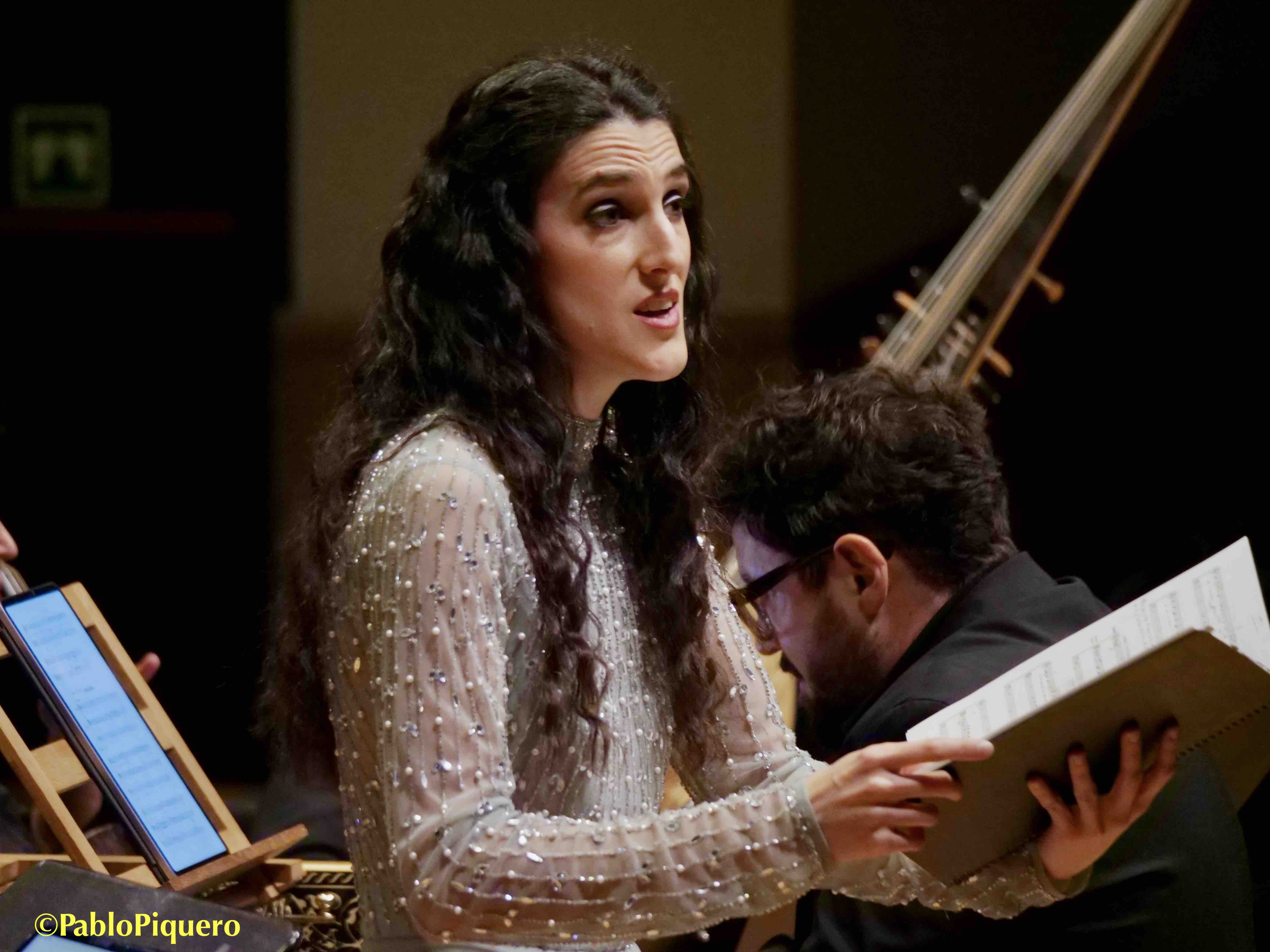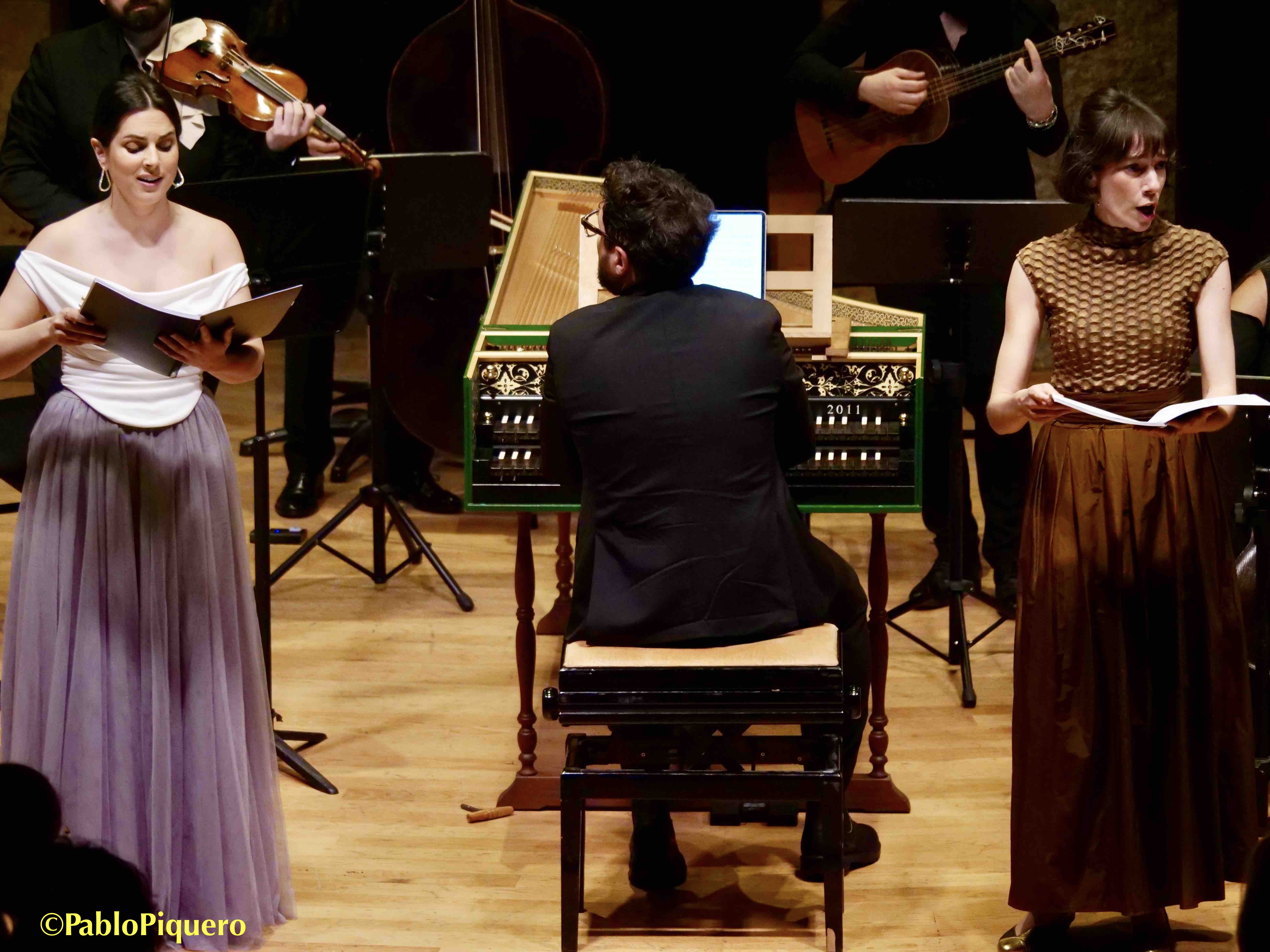 «La Noche» comenzaba con las coplas «Frondosa apacible estancia» cantadas por Jone Martínez y Lucía Caihuela, aire limpio y tierra fértil, soprano y mezzo para abrir esta ópera, prosiguiendo con el dúo y recitado «Moradores de estas playas», antes del primer coro A cuatro, lección de empaste de las voces: «Y así le festejen, celebren y sirvan con tiernos arrullos y suaves caricias». Alternancias vocales donde captar las cualidades de todas ellas, cristalina Soraya Méncid y verdadero fuego de Pilar Alva capaz de pasar de la soflama a la hoguera encendida por su amplia tesitura manteniendo el color en todos los registros. Cada elemento presentándose con distintos «enfoques» manteniendo la difícil escritura textual y musical que los instrumentos subrayaban.