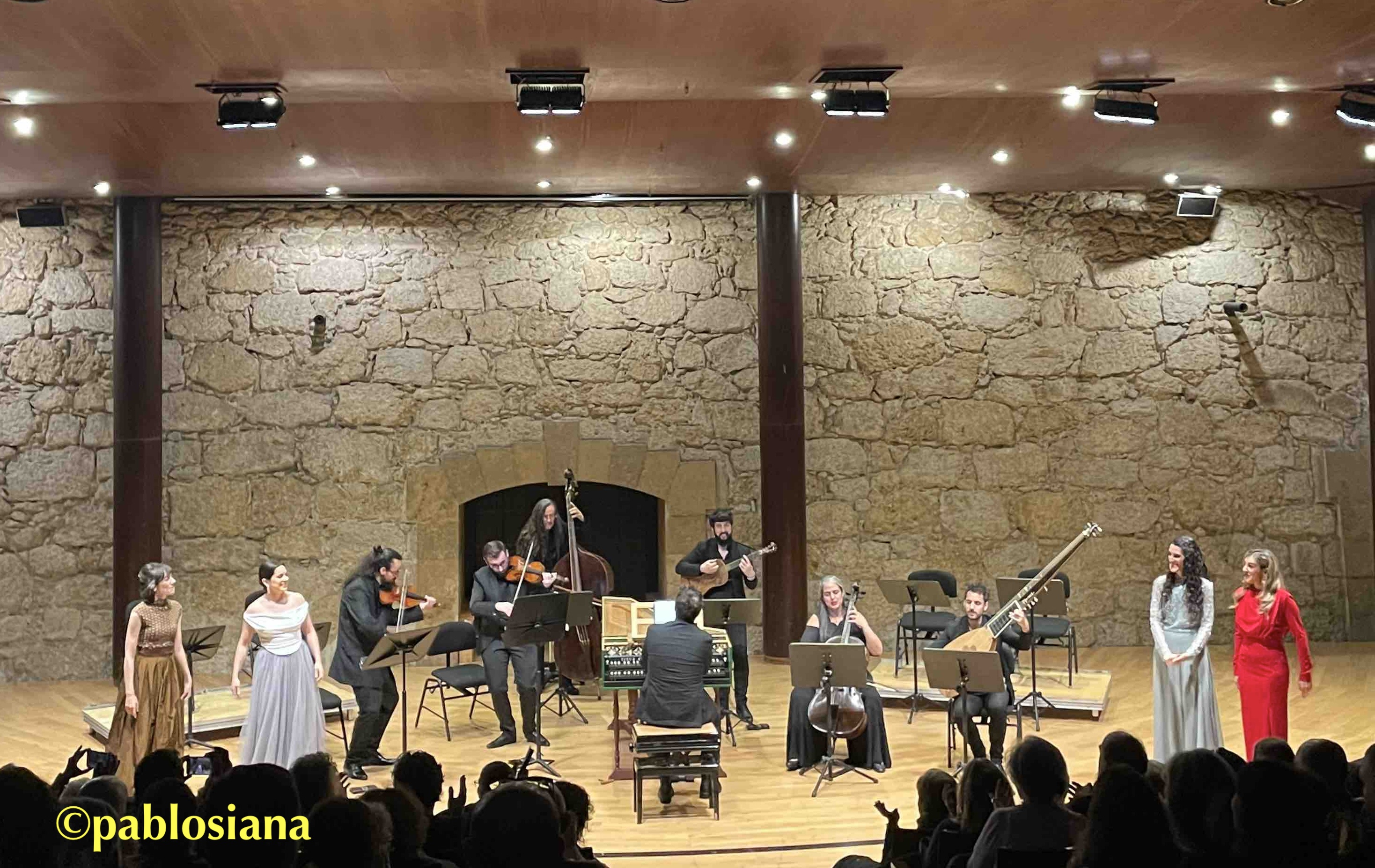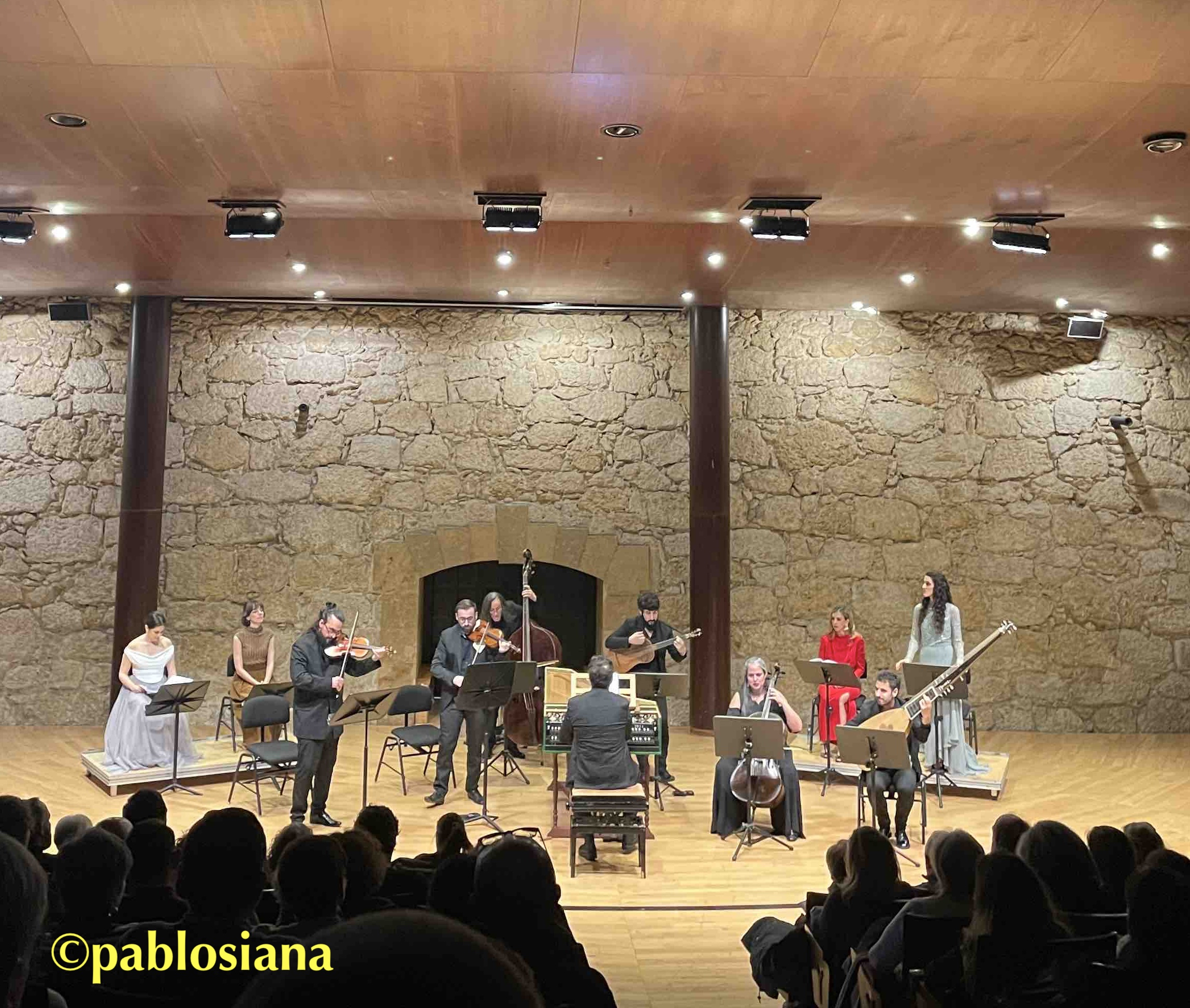«Moble» que significa móvil aplicado al agua como «diamante que se mueve», continuando Tierra («Aqueste hemisferio / y duro obelisco / que sirve de aprisco / a tanto viviente»), Aire («Mi esfera recibe / el plumado velamen, / que vuela al examen / del centro que vive…») y Fuego («La tímida hoguera / y llama medrosa / al frío quejosa, / al yelo severa…»), versos ya de por sí musicales entendiendo la lírica desde este estilo nuestro que las cuatro voces, bien empastadas con el orgánico apropiado (aunque se echasen en falta flautas), nos llevaron sin cegarnos hasta las últimas coplas: «Esfera copiosa» alternando el coro de todas ellas («Con luces e incendios…») con la despedida de Los elementos necesarios para aposentar estas tres etapas, Tierra, Aurora y Tiempo, juego de mezzo y dos sopranos, sumándose la tercera para el último coro: