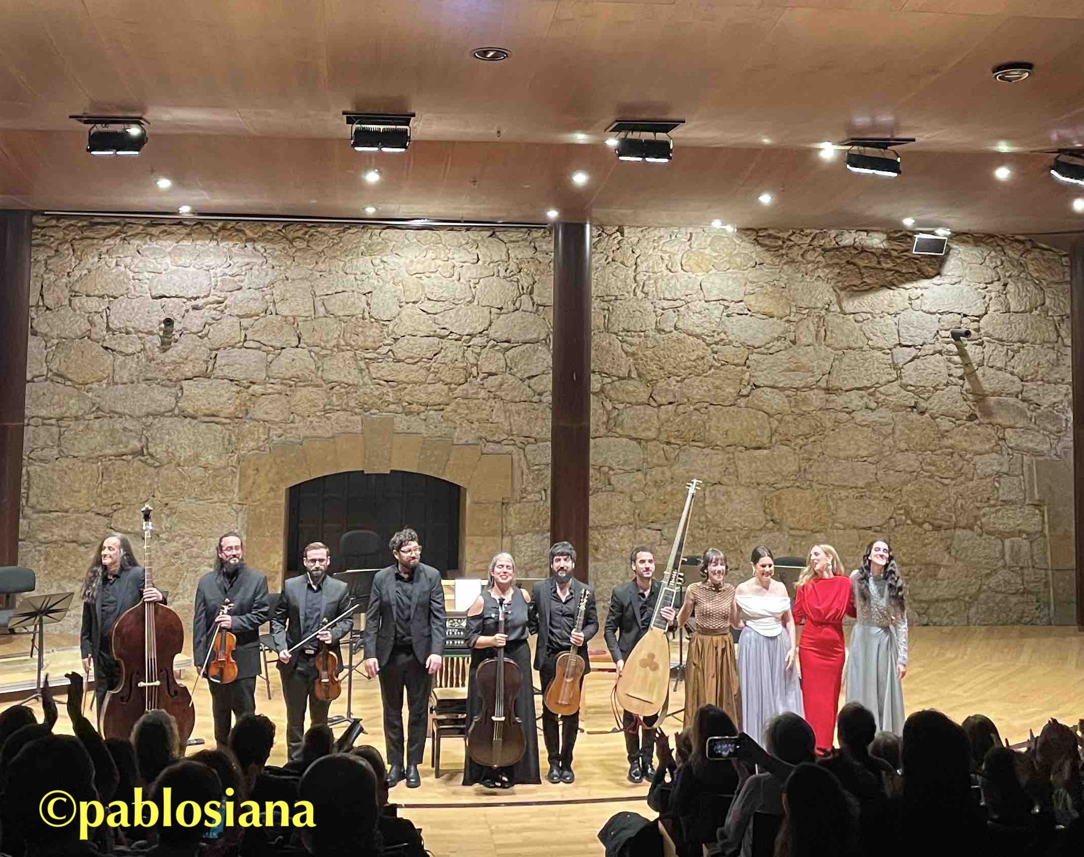 Literes dota cada número de expresividad, alegorías y carácter que las cuatro voces entendieron a la perfección. Caihuela llenaba estas luces de alborada pasando del Tiempo a la Tierra diferenciando ambos personajes siempre arropada por el orgánico adaptado al mismo carácter vocal. Y cada elemento iba apareciendo, Aire «En brazos del Alba», Agua «Deidades que en el monte bipartido» y la Tonada «Dormida fatiga» de una Jone Martínez verdadera Aurora. Claroscuros instrumentales que Forma Antiqva transmite desde sus inicios, barroco «de libro» con rítmicas poderosas y puentes entre los números elegidos para dotar de continuidad una narrativa peculiar, tanto por estilo y época como demostrando el magisterio de cada uno de sus componentes.