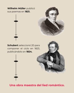 Descubrí Los lieder de Schubert con el barítono alemán Dietrich Fischer-Dieskau que atesoro en mi discoteca, y después me empapé de su libro escrito en 1971 dedicado a ellos, con el subtítulo de «Creación – Esencia – Efecto» (Alianza Música, vol. 44, 1989). Cada ciclo es un reto compartido entre la voz y el piano, dominar la lengua de Goethe para poder expresar todo el contenido de los textos seleccionados, una técnica vocal apropiada a ese género tan romántico, y la perfecta simbiosis entre los intérpretes. Las notas al programa de la doctora Sanhuesa Fonseca nos da el contexto de «La bella molinera»: