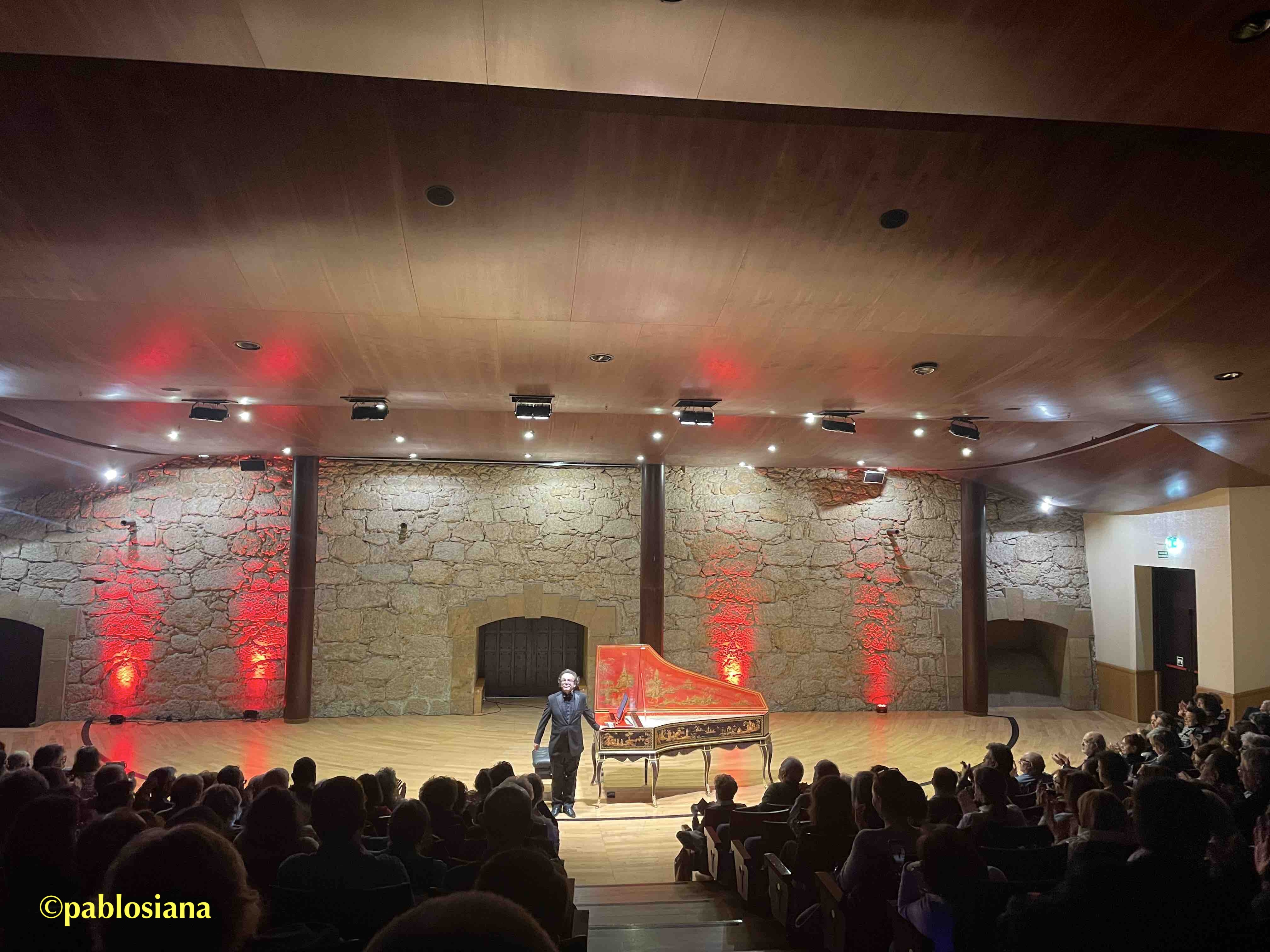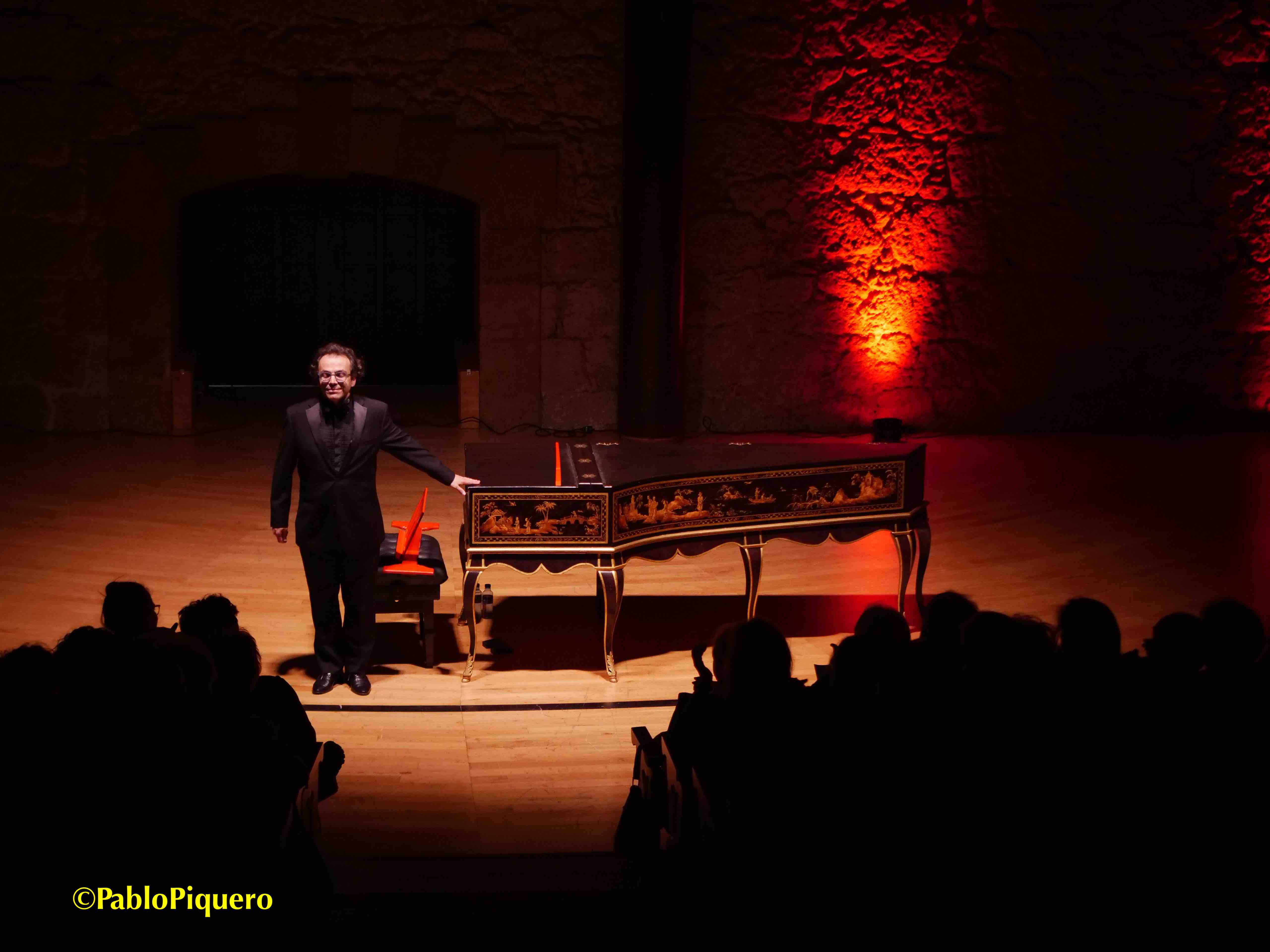 Del monográfico Couperin quiero transcribir parte de lo apuntado por mi tocayo en el programa que titula «Un teatro de caracteres», que completa y expresa mejor que quien suscribe (mis comentarios los añado al suyo en texto negro y con algún enlace a su canal en YouTube©) lo vivido en este segundo concierto de la decimotercera edición de la Primavera Barroca ovetense, con una iluminación apropiada que se aprecia en las fotos de mi otro tocayo, más un público respetuoso en general (los paseos traseros los omito):