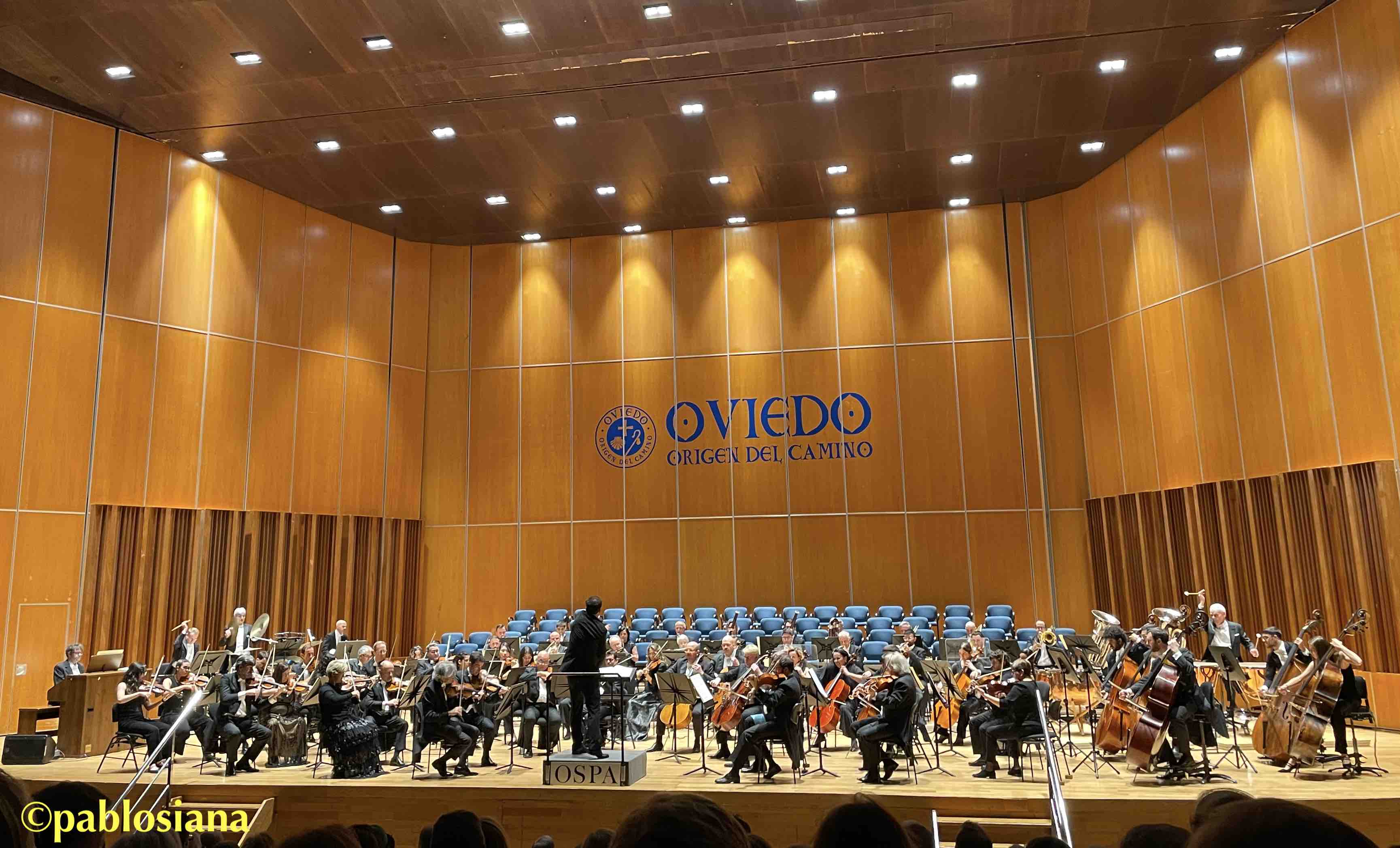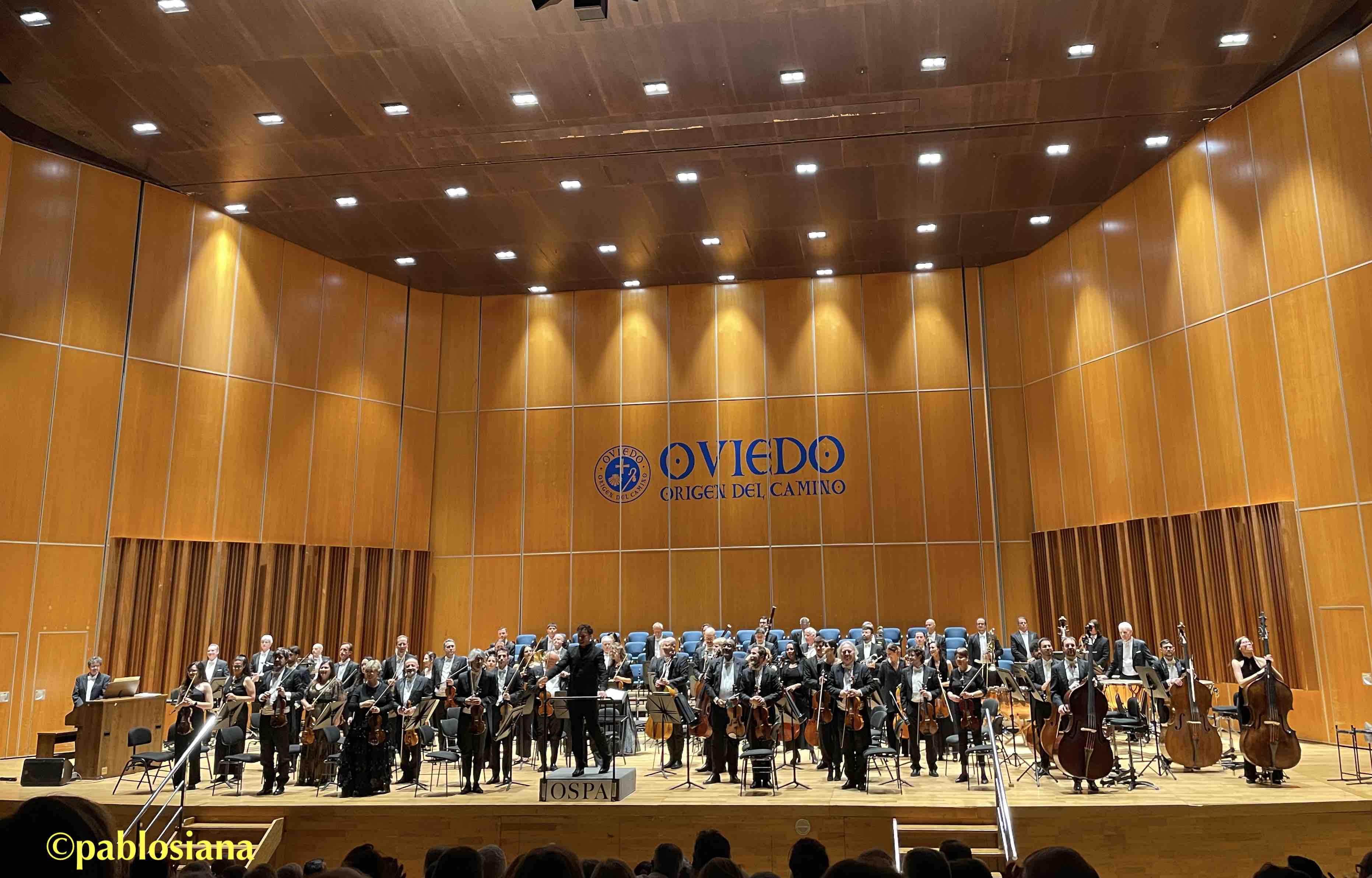 Si puedo buscar calificativos a ese touch of class sinfónico con el que tantos hemos crecido, el sonido es una mezcla de aterciopelado, sedoso, brillante y «nebuloso», de líneas bien definidas en cada sección con unas dinámicas amplias, «pomposo» por momentos casi ceremoniales, y con un equilibrio (lo llamo balance) donde el primer plano protagonista no quede opacado por una globalidad que debe cuidar cada matiz, unido a una expresividad que solo se encuentra con el sonido correcto que el compositor busca. Elgar con sus Variaciones Enigma, op. 36 es perfecto para poder encontrar todo ello, por cercanía climatológica o de paisaje, tal vez con el trasfondo estudiantil inglés de muchos músicos de la OSPA, y aunque parte del público se fuese al descanso (nunca no lo entenderé) o incluso un teléfono volviese a sonar en el peor momento (se cumple la «Ley de Murphy» con penitencia exigida al usuario para que esta Semana Santa escuche completa la Tetralogía wagneriana ¡más el Parsifal!), este Enigma sacó lo mejor de nuestra orquesta, casi 35 años de viaje, hoy caminando de las manos de un Matthew Halls, gestos claros, amplios, cercanos, esculpiendo sonido y tiempo, dejando disfrutar de los primeros atriles (bravos von Pfeil, Alamá y el «recuperado» Andreas), pausas tan expresivas como la propia música de Elgar, o perlas engarzadas con primor del «W.N. Allegretto» (variación VIII) con el IX. Nimrod que siempre me conmueve. Brillantes todos y broncíneos los metales con ese «E.D.U.» final que sigue sonando esperanzador, británico y dejándonos otro «Viernes de Dolor» pleno de emociones.