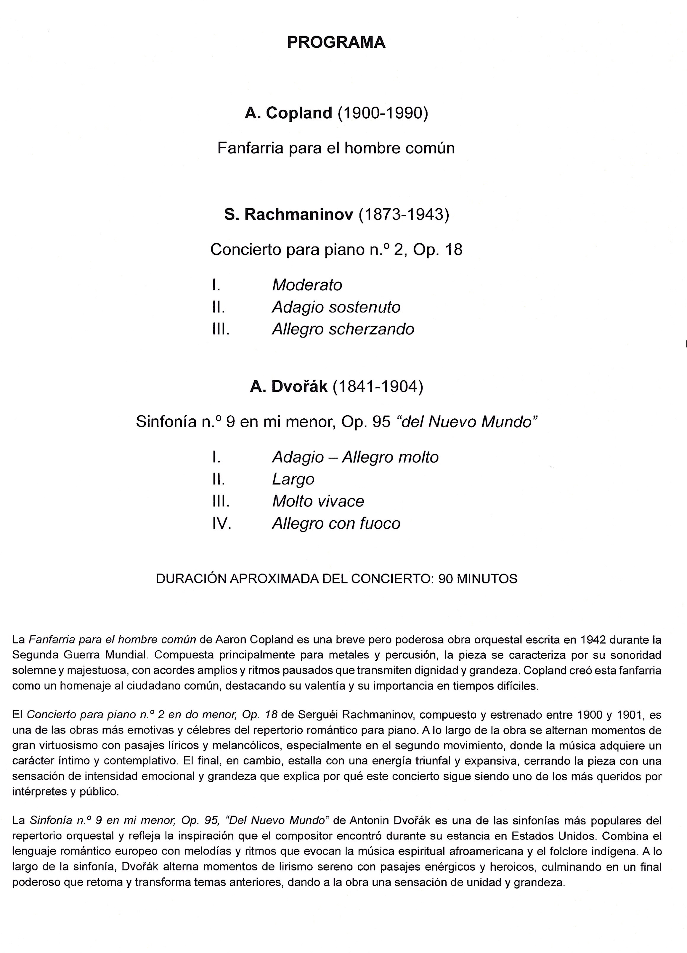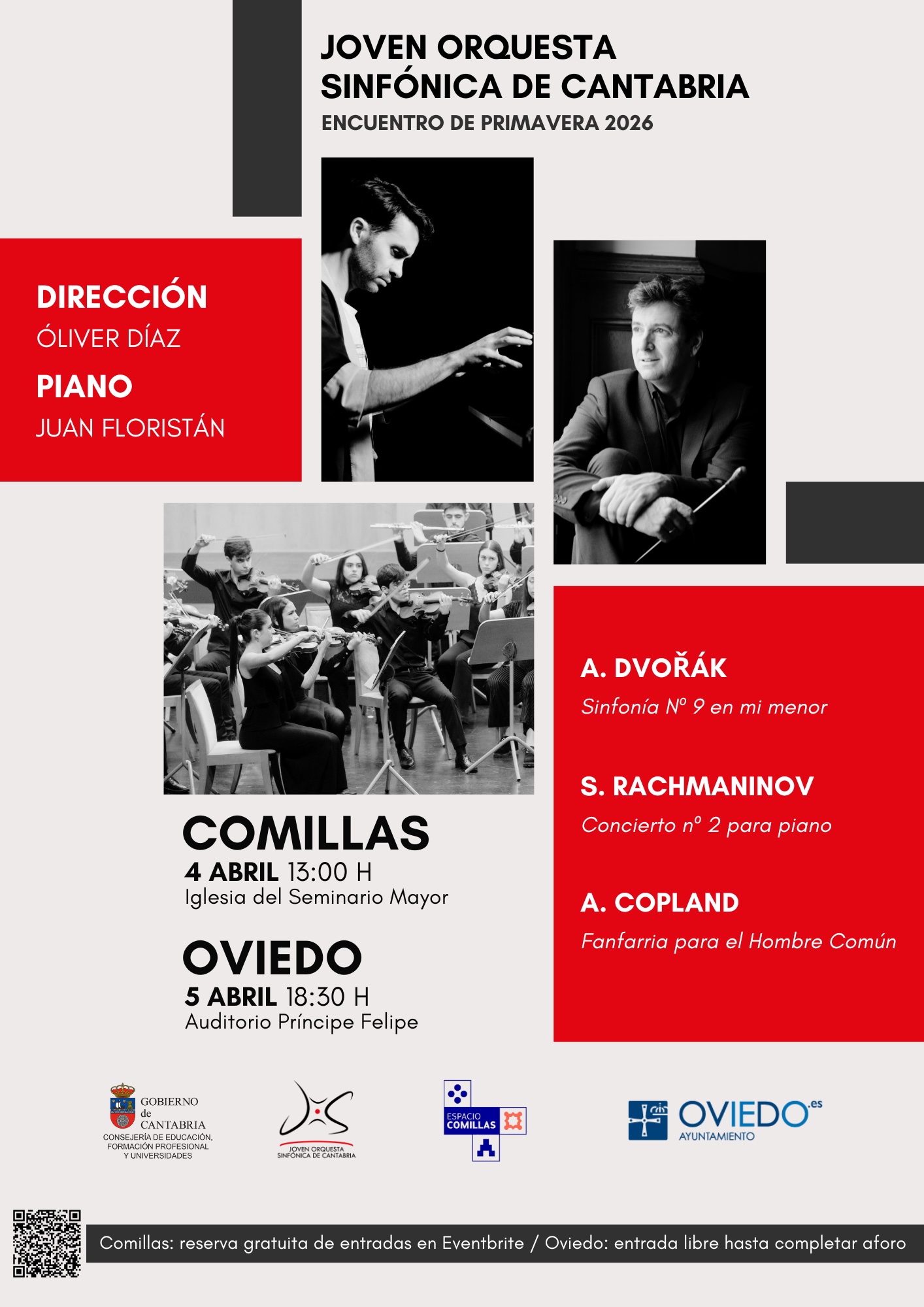 Oviedo 5 de abril, 18:30 horas. Auditorio de Oviedo, Joven Orquesta Sinfónica de Cantabria (JOSCAN), Juan Floristán (piano), Óliver Díaz (director). Obras de Copland, Rachmaninov y Dvořák.