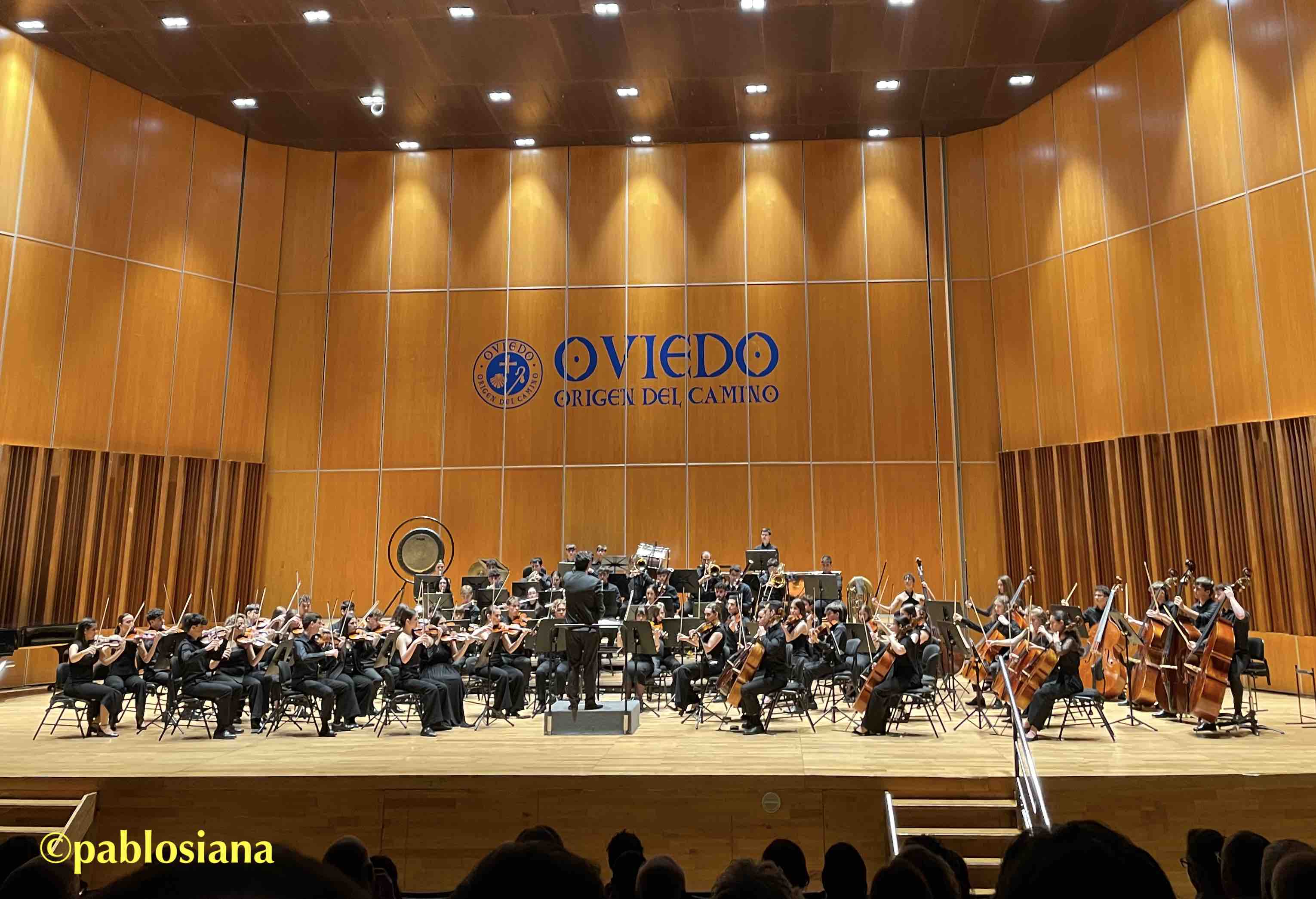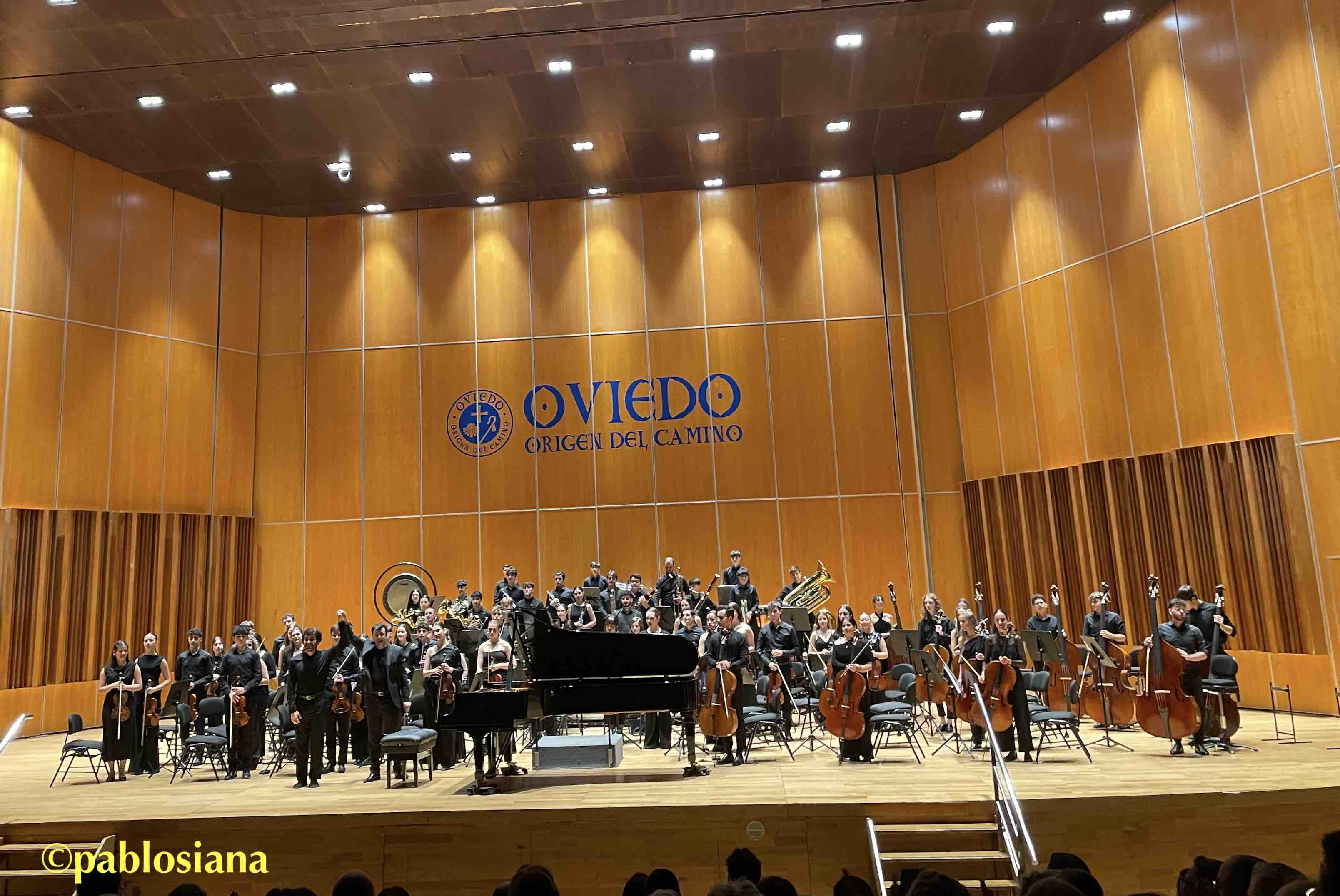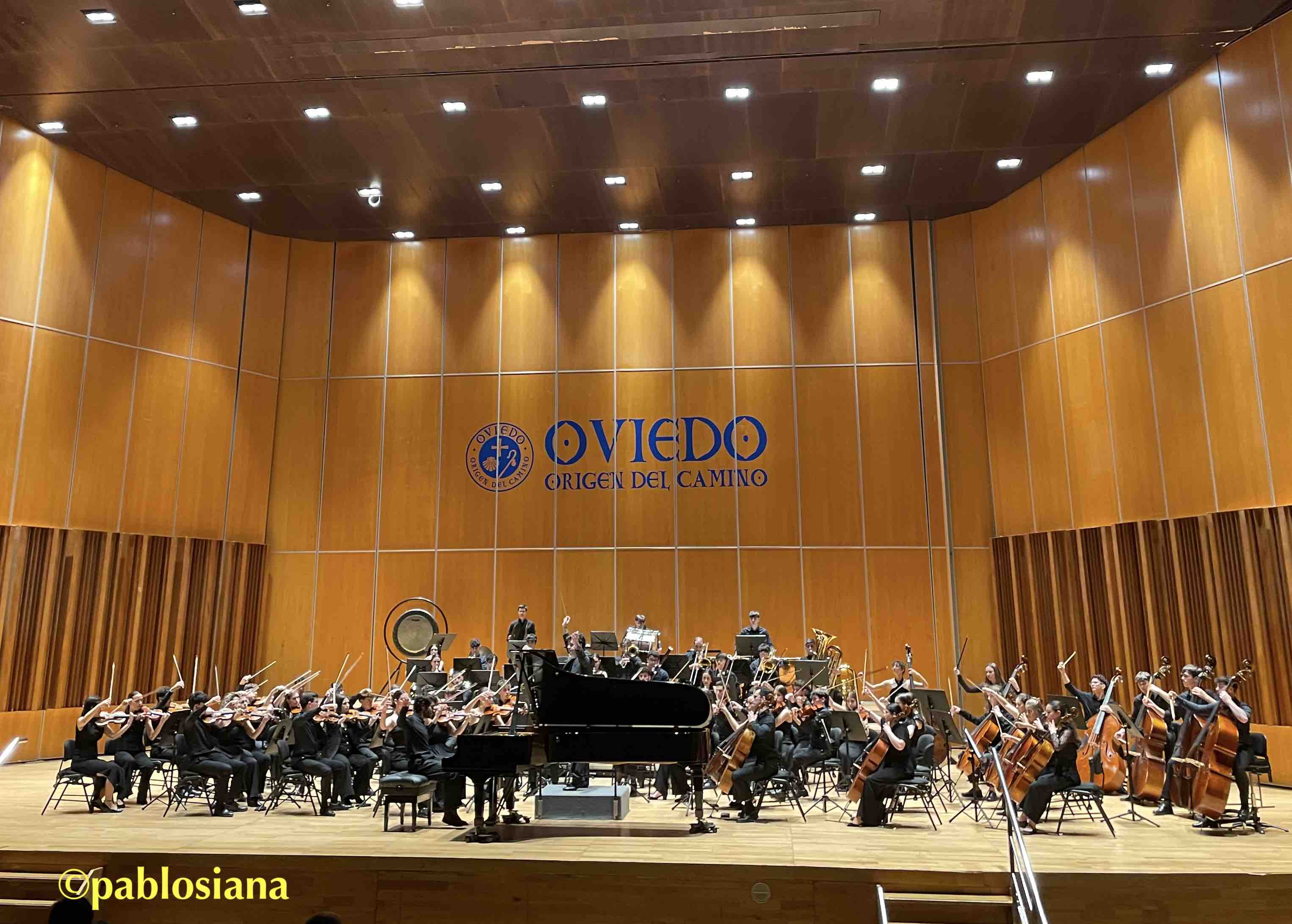 Este Domingo de Resurrección a una hora poco habitual y con no demasiada publicidad, aunque el público fiel no falla, llegaba a la capital ovetense desde nuestra vecina Cantabria la JOSCAN en el «Encuentro de Primavera 2026«, agradeciendo además que su primera salida haya sido a nuestra tierra tras el concierto en la mañana anterior en Comillas, con muchos asturianos tanto en las responsabilidades de la Consejería de Educación, Formación Profesional y Universidades del Gobierno de Cantabria, como en la propia formación de los jóvenes músicos y al frente de la dirección artística y musical el carbayón Óliver Díaz, quien traía a un pianista amigo, al que sigo desde su «descubrimiento» en 2015 (XVIII Paloma O’Shea Santander International Piano Competition) donde se alzaría con el primer premio precisamente con el mismo concierto que interpretaría en este encuentro primaveral, todo un acontecimiento al que no podíamos faltar.