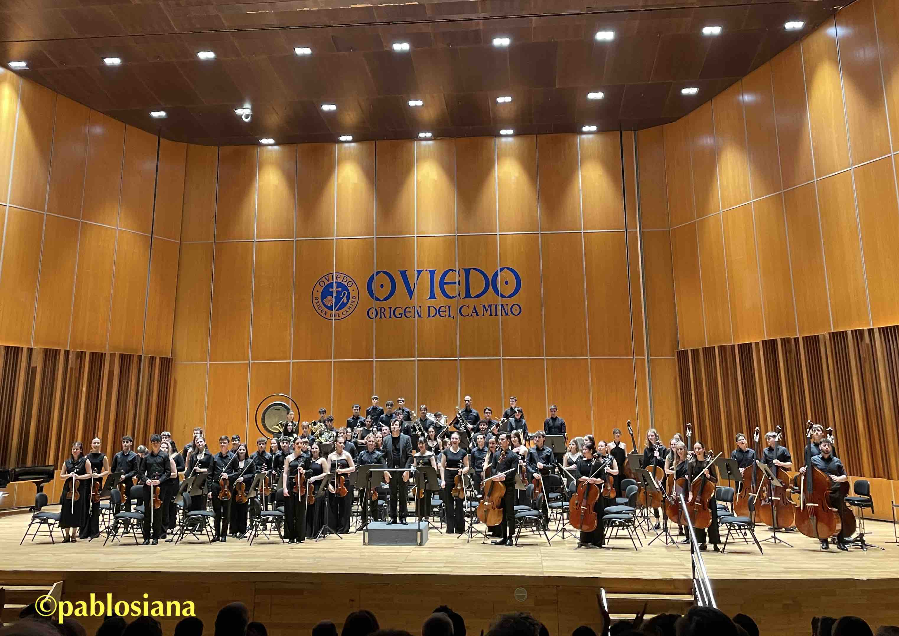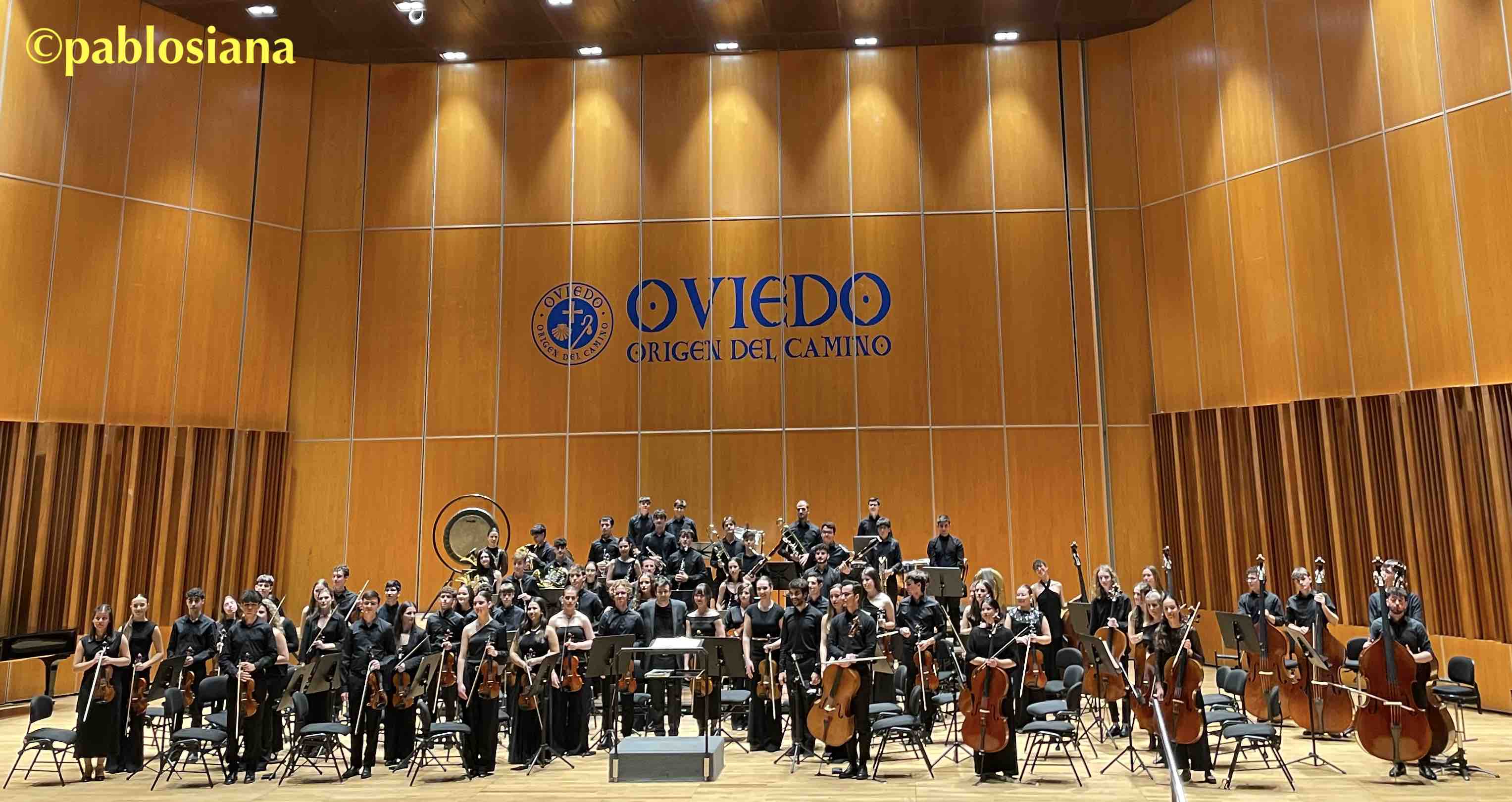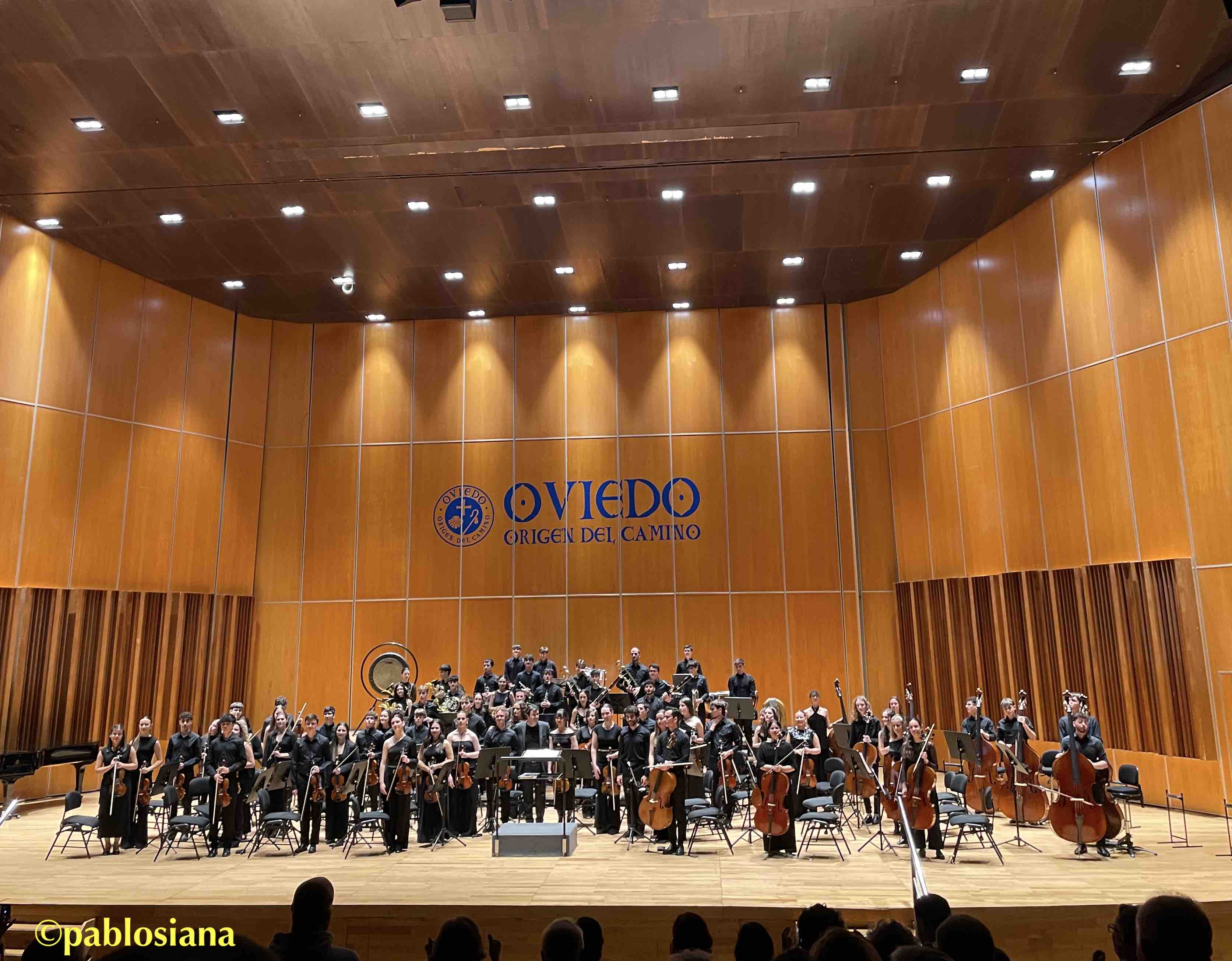 Este Domingo de Resurrección a una hora poco habitual y con no demasiada publicidad, aunque el público fiel no falla, llegaba a la capital ovetense desde nuestra vecina Cantabria la JOSCAN en el «Encuentro de Primavera 2026«, agradeciendo además que su primera salida haya sido a nuestra tierra tras el concierto en la mañana anterior en Comillas, con muchos asturianos tanto en las responsabilidades de la Consejería de Educación, Formación Profesional y Universidades del Gobierno de Cantabria, como en la propia formación de los jóvenes músicos y al frente de la dirección artística y musical el carbayón Óliver Díaz, quien traía a un pianista amigo, al que sigo desde su «descubrimiento» en 2015 (XVIII Paloma O’Shea Santander International Piano Competition) donde se alzaría con el primer premio precisamente con el mismo concierto que interpretaría en este encuentro primaveral, todo un acontecimiento al que no podíamos faltar.