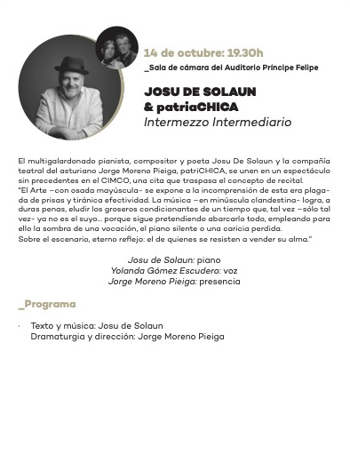 Jueves 11 de diciembre, 19:30 horas. Auditorio de Oviedo, Jornadas de Piano “Luis G. Iberni”: Lucas Debargue (piano), Oviedo Filarmonía, Lucas Macías Navarro (director), Sofía Martínez Villar (narradora). “Música y enigma II”, obras de Òscar Colomina i Bosch, Ravel y Falla.
