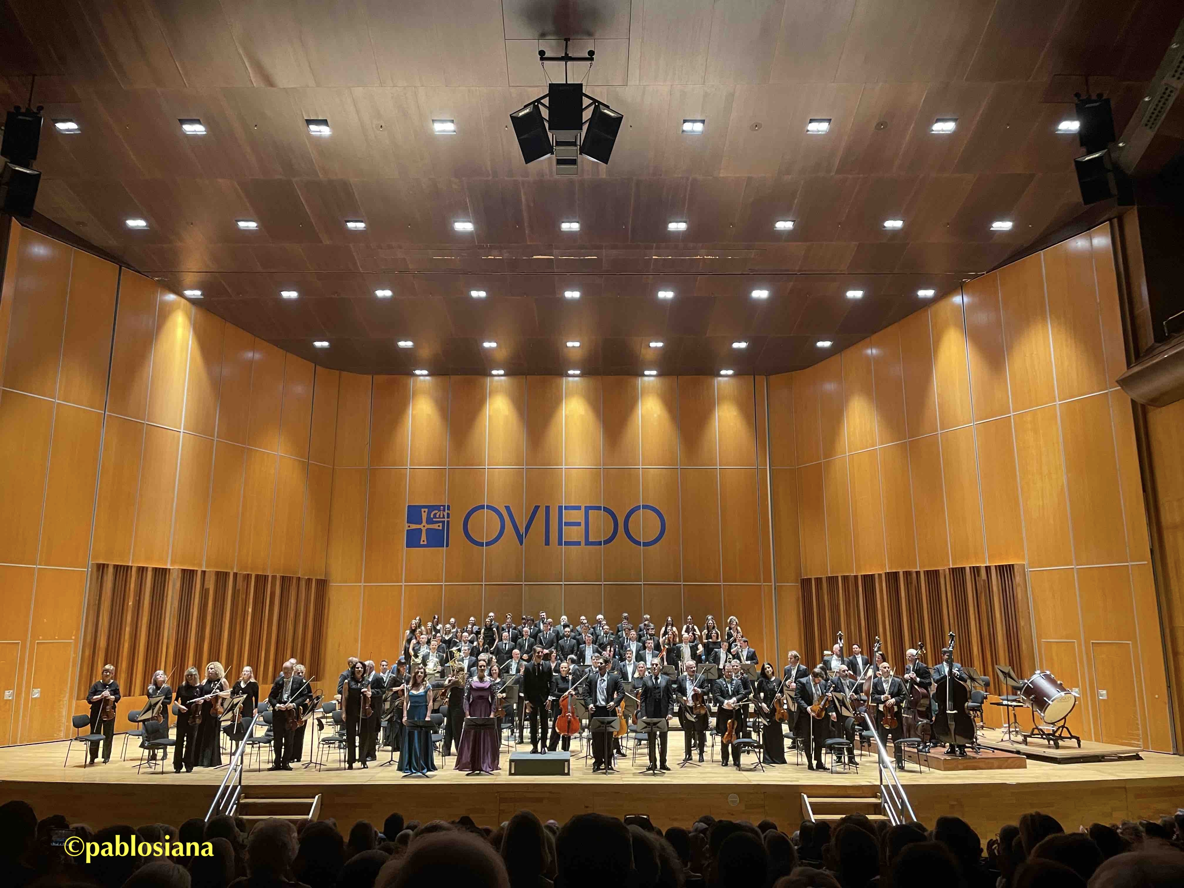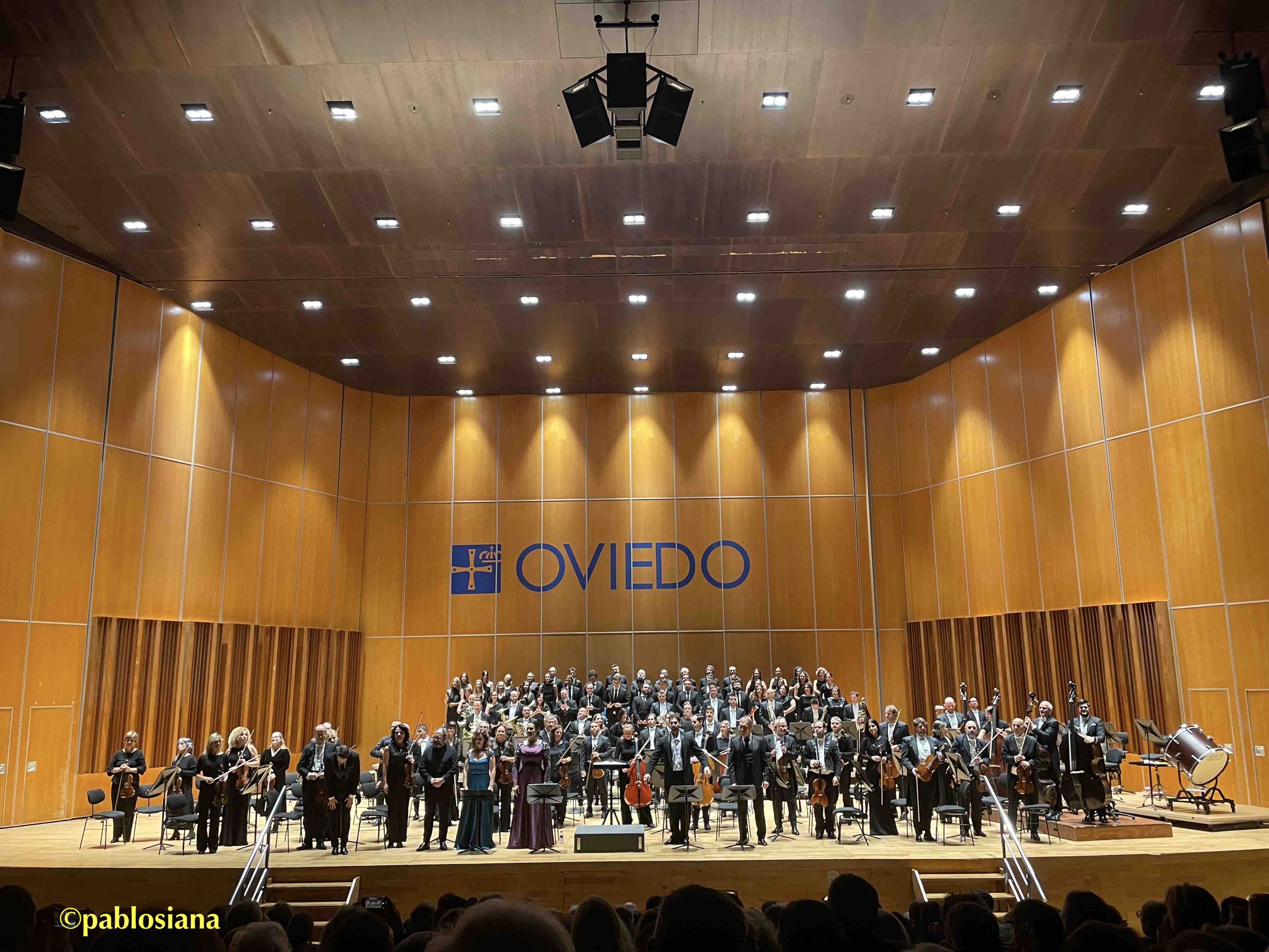 Y si la escena no gusta, siempre nos queda la opción de cerrar los ojos y escuchar la música de Verdi que llena y realza todo argumento. El maestro carbayón Oliver Díaz es ya un consumado director que conoce muy bien el foso para ayudar siempre a los cantantes, y esta vez volvió a demostrarlo al frente de la OSPA que volvió a dejarnos una sonoridad compacta, de altura y calidad ya desde la obertura, con primeros atriles que sonaron como alter ego de los protagonistas, desde el oboe al chelo en los momentos más destacables de esta ópera.