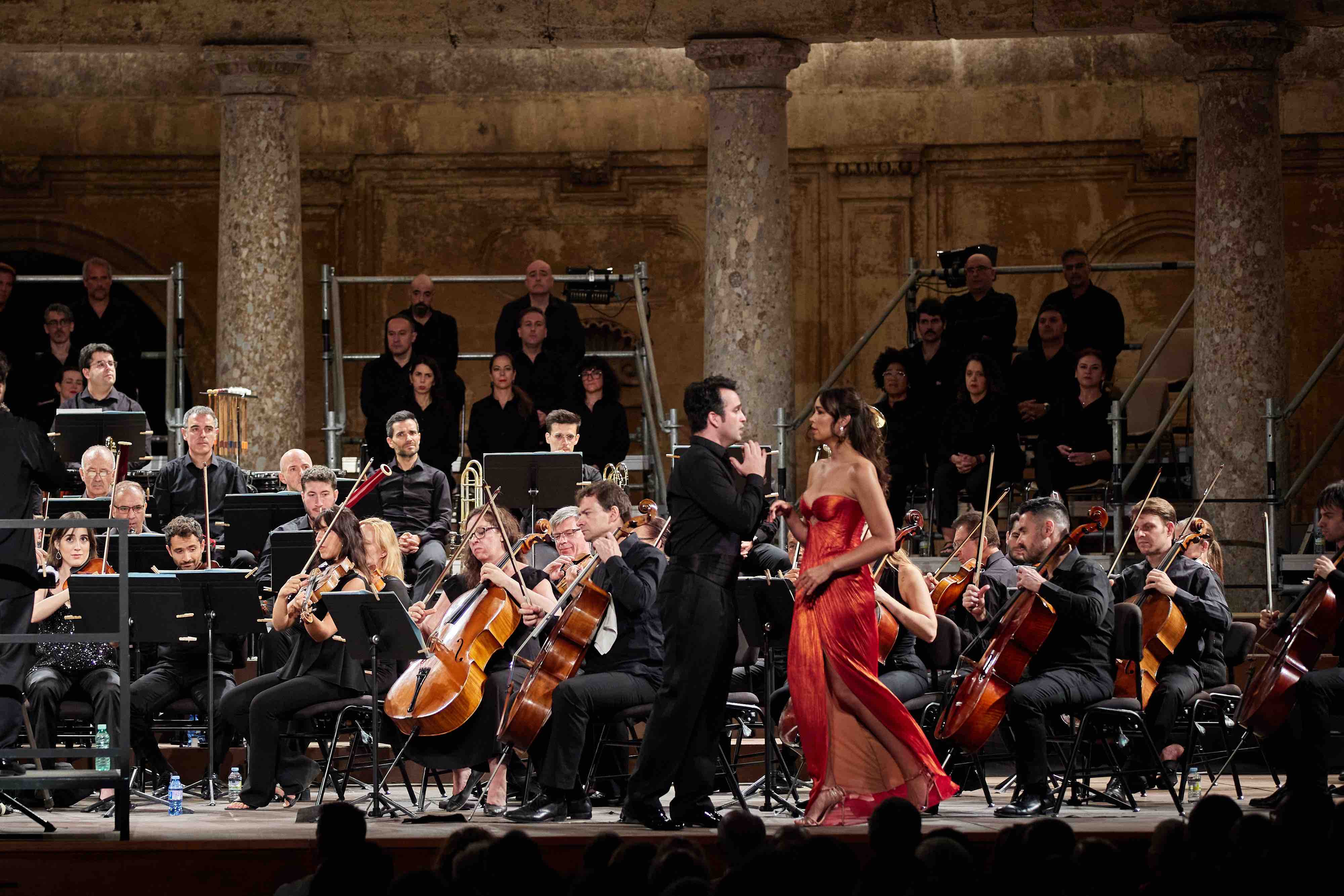 Viernes, 11/07/2025 22:00, Palacio de Carlos V: La traviata, música de Giuseppe Verdi (1813-1883) y ibreto de Francesco Maria Piave, basado en La dama de las camelias de Alexandre Dumas hijo. Ópera en tres actos (1853). Versión concierto: Orquesta y Coro Titulares del Teatro Real – Henrik Nánási (director musical) – José Luis Basso (director del coro). Reparto: Nadine Sierra, soprano (Violetta Valéry) – Karina Demurova, mezzosoprano (Flora Bervoix) – Gemma Coma-Alabert, mezzosoprano (Annina) – Xabier Anduaga, tenor (Alfredo Germont) – Artur Rucinski, barítono (Giorgio Germont) – Albert Casals, tenor (Gastone, vizconde de Létonières) – Tomeu Bibiloni, barítono (El barón Douphol) – David Lagares, bajo (El marqués de Obigny) – Giacomo Prestia, bajo (Doctor Grenvil) – Joan Laínez, tenor (Giuseppe).