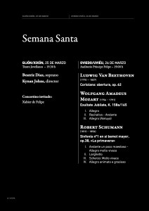 Lucas Macías Navarro volvió a demostrar su excelente trabajo, la interiorización de cada obra y su exigencia para con la orquesta en la Sinfonía n.º 4 en mi menor, op. 98 de Brahms, rica de principio a fin, detallista, preciso y claro, arranque del Allegro non troppo vivo manteniendo la tersura y textura orquestal, dibujando las líneas con delicadeza, realzando los graves hoy contundentes, sujetando los metales sin oscurecer el conjunto, disfrutando de una madera empastada, con unos fraseos bellísimos. El Andante moderato reafirmó la búsqueda de un sonido limpio, precisión de ataques, ritmo decidido. Contundente Allegro giocoso – Poco meno presto sujetando el tempo para una formación tersa y entregada que remataría en un Allegro energico e pasionato, Più allegro convincente, maduro, carnoso, reposado, matizado y entregado, con una madera destacable tanto en la flauta como en el clarinete, brillando a gran altura todos.