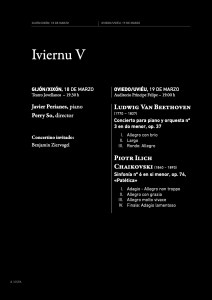 Si algo ha caracterizado a la formación ovetense sin duda es la amplitud de estilos que le confieren una ductilidad sonora difícil en otras orquestas. Y apostando por la nueva creación el «Proyecto Beethoven» ha reunido estrenos de cinco compositores que tienen una especial vinculación asturiana con la orquesta, siendo este sábado el turno de Israel López Estelche (Santoña, 1983) y sus Tres danzas donde la original «excusa» del supuesto origen español de la abuela del sordo genial, le sirve para construir un tríptico verdaderamente novedoso de ritmos con aires hispanos de inspiración universal, orquestación rica e impecable además de buena prueba de fuego para la Oviedo Filarmonía con Rolanda Ginkute de concertino y Lucas Macías de nuevo al frente, tres danzas evocadoras de lenguajes propios y heredados de sus maestros, armonías francesas del cambio de siglo mezcladas con aires de Falla en la última, música cercana y exportable, actual y eterna por lo bien «armada» y escrita que está la estrenada obra de un compositor cántabro ya maduro en su formación, trayectoria y lenguaje, tres piezas bien defendidas por los intérpretes, recibiendo todos ellos sobre el escenario los merecidos aplausos de un público que sigue llenando el reducido aforo del auditorio en estos tiempos convulsos, ávido de música con tanta calidad como esta inicial en un sábado lluvioso donde la luz la pone siempre la cultura segura y estos conciertos.
