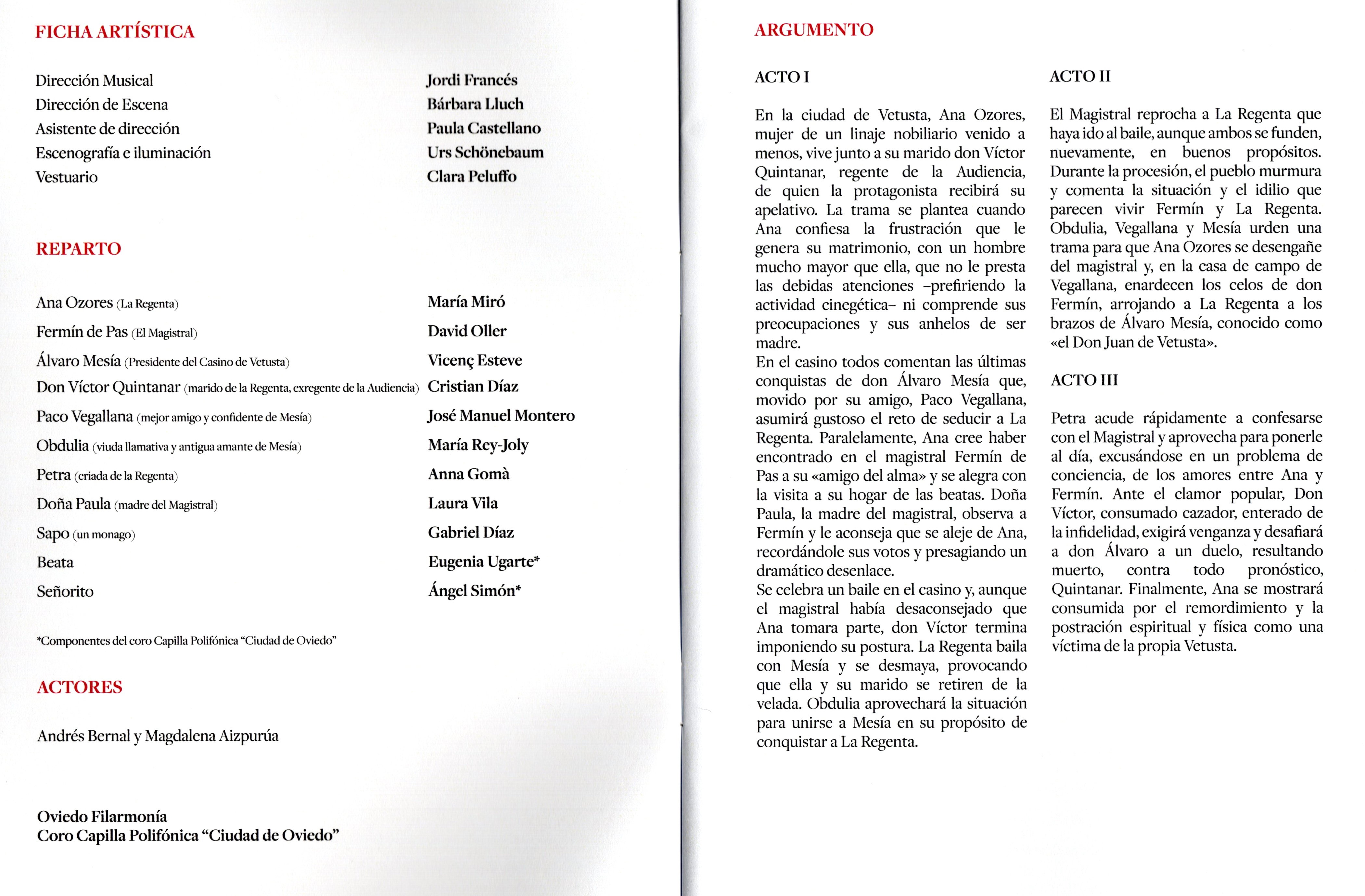 Para finalizar me queda citar al tenor murciano Francisco Cruz que mostró sus facultades vocales en un Matteo Borsa presente y suficiente, a la soprano berciana Nerea González dotada de una voz interesante con buenos agudos y defendiendo sus breves papeles de La condesa de Ceprano y Giovanna. Por último me encanta comprobar cómo hay cantera lírica en Asturias, y así la joven soprano gijonesa Teresa de Albéniz debutaba con el partiquino del paje, tras su rodaje en la compañía musical infantil, y residente en la ópera ovetense “La Federica”. Segura sobre las tablas, con maestras de quienes seguir creciendo y donde mirarse, el próximo mes de enero interpretará la adaptación de «Carmen» paralela a la que cierra temporada.
