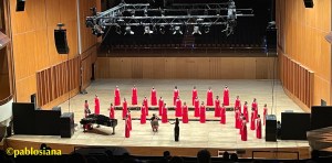 Aurum siguen brillando con luz dorada propia y rojo pasión, también con Elena al mando, esfuerzo enorme de ubicaciones, repertorio de memoria y sonido inigualable. Comenzar con Einförmig ist der Liebe Gram (Brahms) es todo un reto, colocadas en distintos círculos para inundar el auditorio de belleza coral con estas voces blancas increíbles en registros y dinámicas. El guipuzcoano Josu Elberdin es uno de los compositores de cabecera del LDO y su Salve Regina para Aurum un regalo en estas voces. Encontrar una formación que interprete las obras con esta calidad espolea a los grandes y Elberdin mantiene este idilio mutuo con este proyecto que todavía seguirá dándonos muchas alegrías.