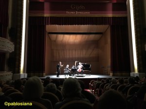 Merecidos aplausos y sorpresa saliendo de nuevo Jesús Reina con unas variaciones sobre la popular canción gitana rusa Dos guitarras que sorprendió por todo, especialmente por un uso mágico del pizzicato evocando balalaikas o mandolinas virtuosísticas, juegos de arco y dedos vertiginosos que impresionaron a un auditorio hambriento de la música viva, en directo, irrepetible.Y como si leyese mi mente, en este concierto sólo faltaba la B del «Dios Bach» del que Reina nos regaló la «Chacona» de la Partita nº2 en re menor, BWV 1004, perfecta de principio a fin, sonido, ejecución y entrega. Aquí podría haber terminado el concierto en todo lo alto aunque quedase la tercera B.
