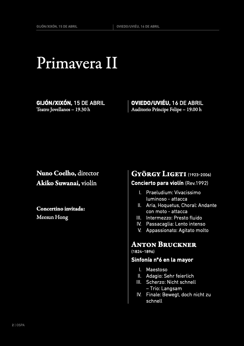 Puede que otro programa y acompañamiento ayude a disfrutar más de su voz, pero para estos cuatro lieder straussianos no creo que esté en condiciones óptimas. Parece que los músicos de la OSPA sí se tomaron muy en serio este último examen porque dieron más de lo que se les exigió, y los solos de Vasiliev y Myra Pears fueron realmente de matrícula de honor. Globalmente las cuatro canciones fueron de menos a más, aunque me quedo con la tercera de Hermann Hesse Beim schlafengehen (como a Suñén tampoco me gusta la traducción literal de «Al ir a dormir») y la de Joseph von Eichendorff Im Abendrot («En la puesta de sol»), auténtica maestría de maridaje texto y música como en Schubert, Schumann o Mahler. El divorcio estuvo entre solista y director, el dulce en la propia obra.