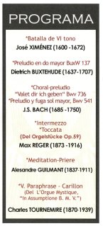 Tras el tributo “hispano” llegaría el barroco potente, primero con Johann Jakob Froberger (1616-1667) y la Toccata II (Libro secondo, 1649) escrita en el denominado stylus phantasticus y desembocando en una giga, una demostración del poderío tanto del órgano como del organista para proseguir con Jan Pieterszoon Sweelinck (1562-1621) y la Echo fantasia «Puer nobis nascitur», un despliegue de registros para alcanzar esos juegos de contestación con tímbricas que recrean ese fenómeno de la naturaleza, y el órgano del Salvador respiró por flautados y lengüetas de todas las medidas.