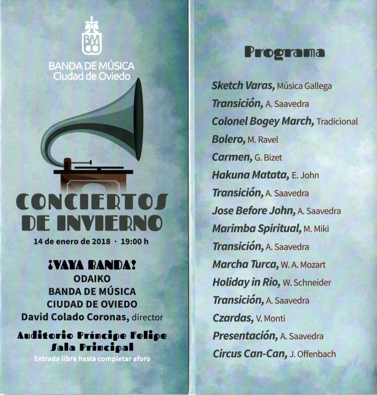 Domingo 9 de febrero, 19:00 horas. Auditorio de Oviedo, Conciertos de Invierno, «George Gershwin: el puente entre la música clásica y el jazz». Banda de Música «Ciudad de Oviedo», Henar F. Clavel (piano), David Colado Coronas (director).