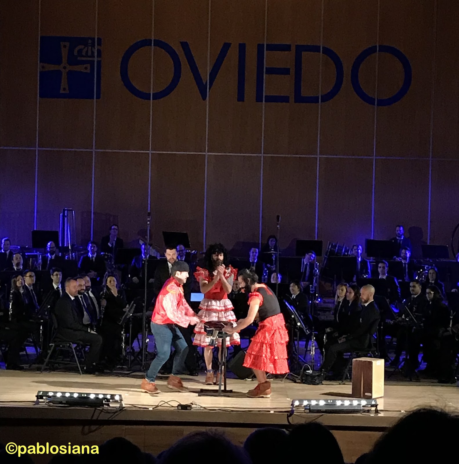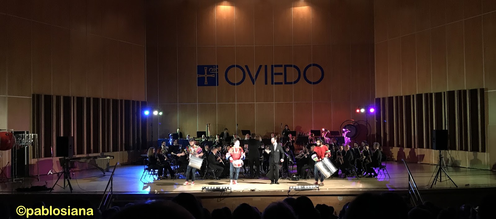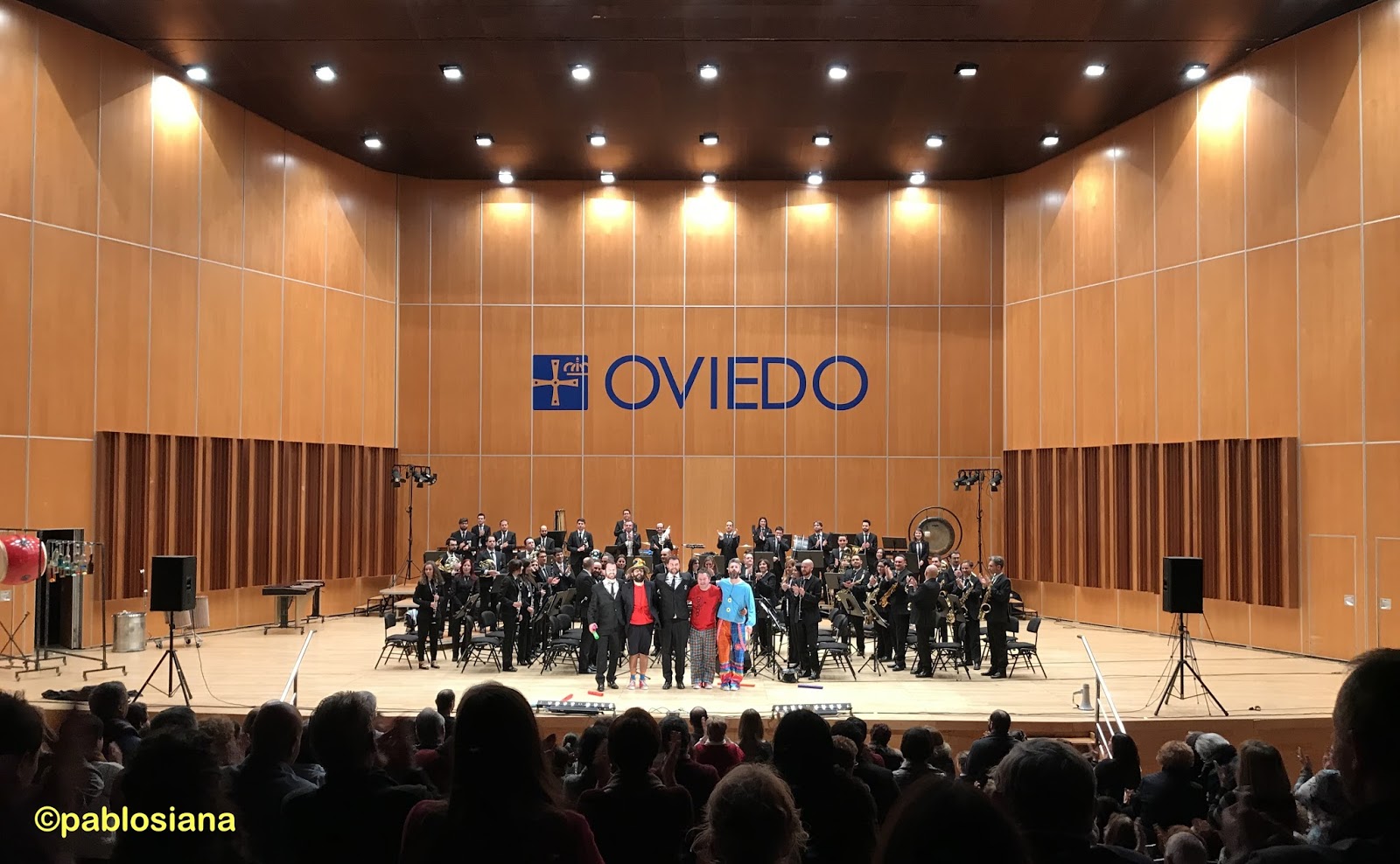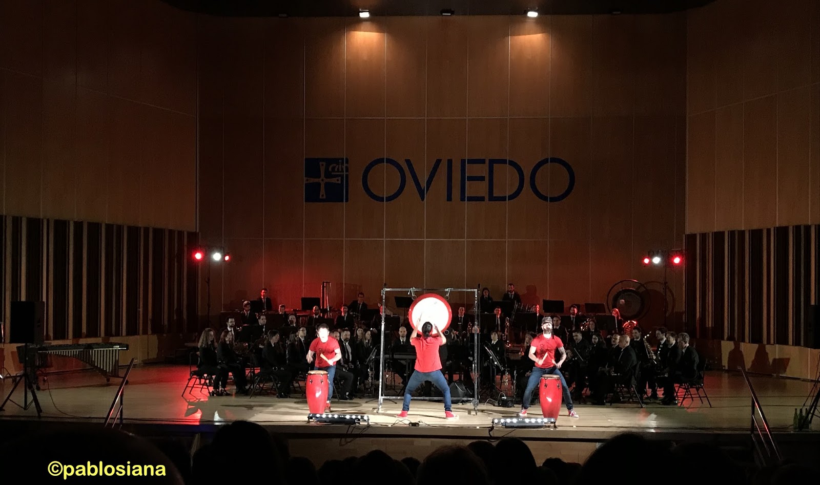 Otro tanto sucede con Un Americano en París donde la película con Gene Kelly permanece en nuestra memoria. El músico japonés rehace esta página del neoyorquino dándole la magnificencia que otorga una banda sinfónica con contrabajo y arpa «de teclado» (a cargo de Lisa Tomchuk) más todo el poderío de los metales, un arreglo que nos permitió disfrutar de los excelentes solistas de la banda ovetense (muy bien la saxofonista Helena Maseda y la percusionista Susana Escaño con la bocina y flauta de émbolo), y un sonido compacto además de contundente en todas las secciones.