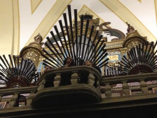 Oviedo viene a paliar el desaguisado y barbecho organístico (entre todos mataron y él solo se murió), quedándose en una simple agonía porque cada verano recupera parte de este legado, estando presente algún concierto como el último al que asistimos, con un nuevo lleno «pagando» incluso la misa previa en La Corte, la antigua iglesia del monasterio de San Vicente, el mismo del Padre Feijóo que preside la plaza, y cuyo claustro acoge hoy el Museo Arqueológico, sede de la mayoría de conciertos veraniegos, una iglesia restaurada en el XVIII que tiene el mejor órgano ovetense y una de nuestras joyas (junto al de Puerto de Vega), instrumento barroco (1705) “mudo” desde 1950, restaurado por Grenzing en 1988 cuando quedaba dinero para casi todo, y que si pudiese hablar daría para muchas y variopintas historias de muerte y resurrección musical con Moisés casi patrono por «salvado» de las aguas en 2003.