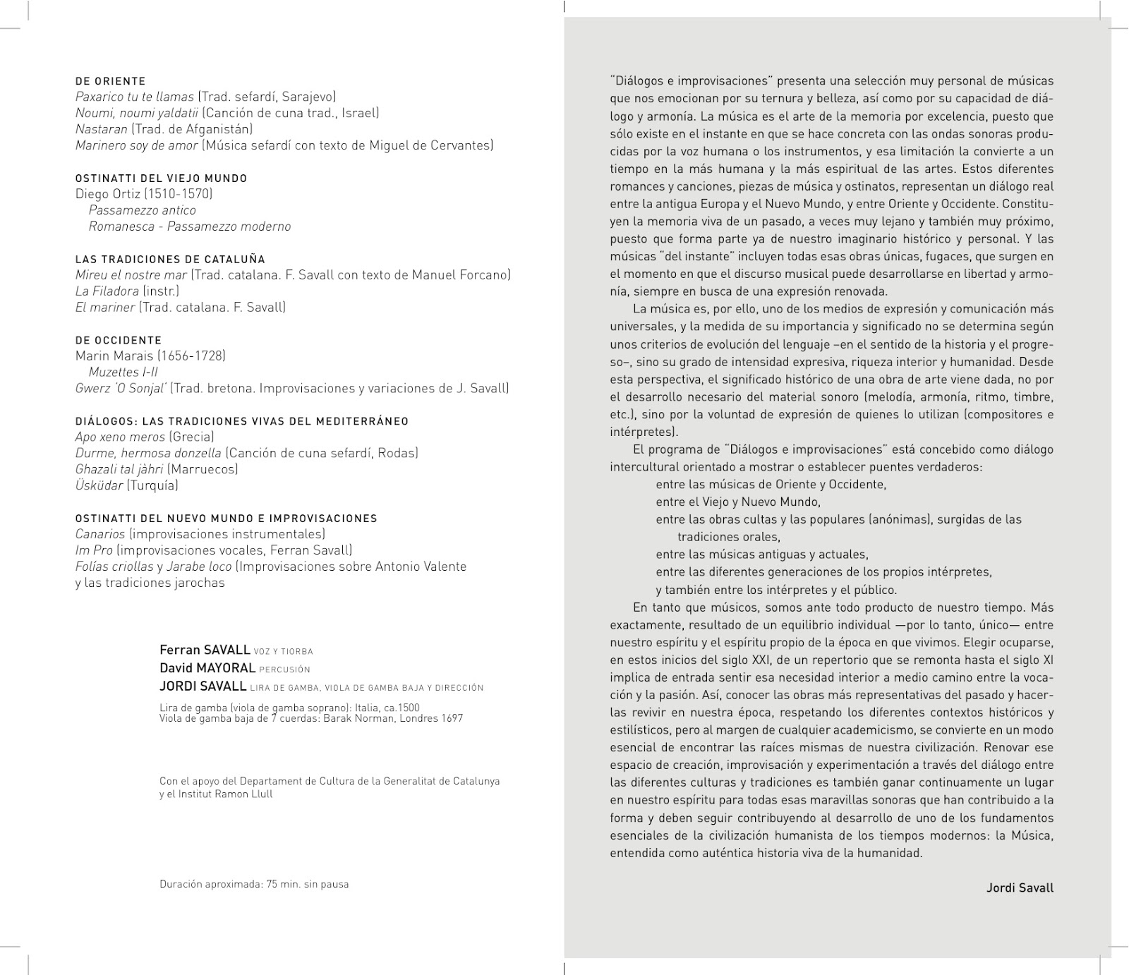El siglo XVII resultó revolucionario también en la música y las artes plásticas por un efecto dramático que rompe con la simetría y el equilibrio renacentista y deja paso a las emociones «desde el sufrimiento extremo o la alegría más desbordada», seña de identidad en cada pieza donde alternan grandes maestros de la música instrumental con obras para órgano tituladas de “durezze e legature” como llamaría Frescobaldi, traducido a esta música como «disonancias y suspensiones», alternancia de acordes puede que «duros» para entonces, hoy más placenteros por educación y tiempo, con armonías placenteras que expresan contrastes preparatorios del barroco pleno, dolor y serenidad como pilares emocionales.