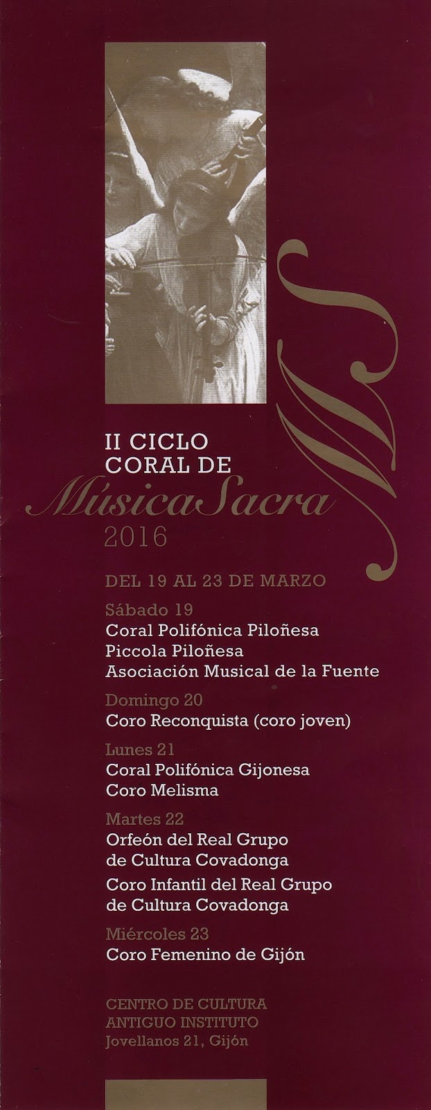 Cuarto día de mi festival con sesión matinal, coral «a capella» y un programa variado donde se volvía a homenajear a Juan-Alfonso García que sigue siendo y sonando actual, con obras interesantes que Helena Martínez Díaz en las notas al programa titula «Diálogo entre música y palabra» (que iré intercalando a lo largo de esta entrada) donde no faltó un estreno del compositor y organista catedralicio. De este tributo musical, la web del festival dice: