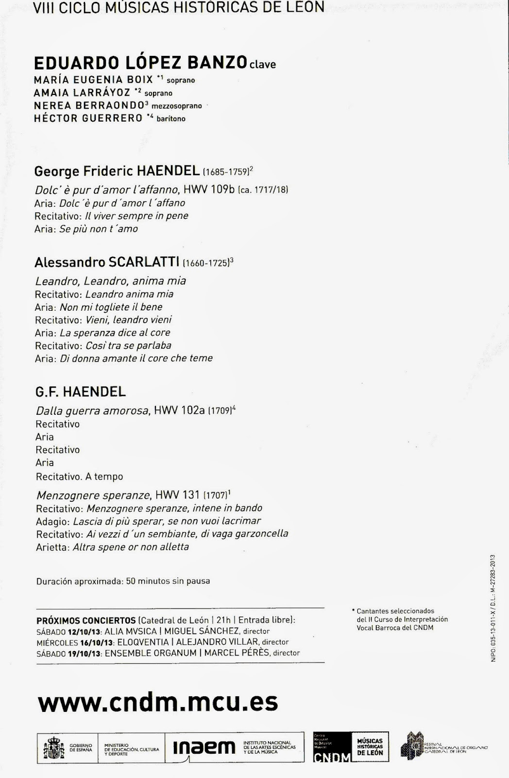 Pedro Lopes e Castro encontraron el ropaje instrumental perfecto, tal vez abusando de un portamento más expresivo que técnico en su amplio y homogéneo registro, así como unas agilidades limpias. Los recitados fueron otra demostración de entrega y convencimiento, con el clave perlado de