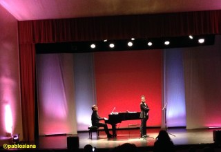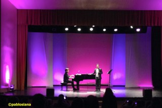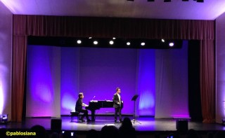 Mis queridos amigos mierenses Elena Pérez-Herrero y Alfonso Morán han logrado estos años un dúo muy especial, calidad y calidez con un repertorio muy bien seleccionado y arreglado ex profeso. Elena Pérez-Herrero es una mezzo que desde 1993 ejerce la docencia e investigación del canto y la voz como instrumento de transmisión técnico-expresivo, aplicando conceptos enraizados en la psicología y corrientes filosóficas en diversos conservatorios o seminarios por toda España y maestra de muchas figuras del canto. Por su parte Alfredo Morán, es compositor, arreglista, productor y guitarrista que cursó sus estudios de música en el Conservatorio de Música de Oviedo, en el Taller de Músicos de Madrid y en la Berklee de Boston y lleva 12 trabajos editados (9 cedés y 3 audio-libros), habiendo ganado el Premio Amas 2014 (en la modalidad Guitarra). Tras presentarse nos interpretarían de su último trabajo El clavel del aire blanco de Guastavino en arreglo del turonés, una maravilla vocal cual «suspiro detenido» en la voz de la mierense y pura elegancia de acompañamiento a la guitarra, incluyendo partes recitadas, tras lo que Elena daría un abrazo a los que están lejos pero siempre cerca con Longe de Federico Marroquín que tienen grabada en el CD Reflejos (2016), poesía cantada y sentida con unos matices extremos llenos de expresividad y buen gusto.