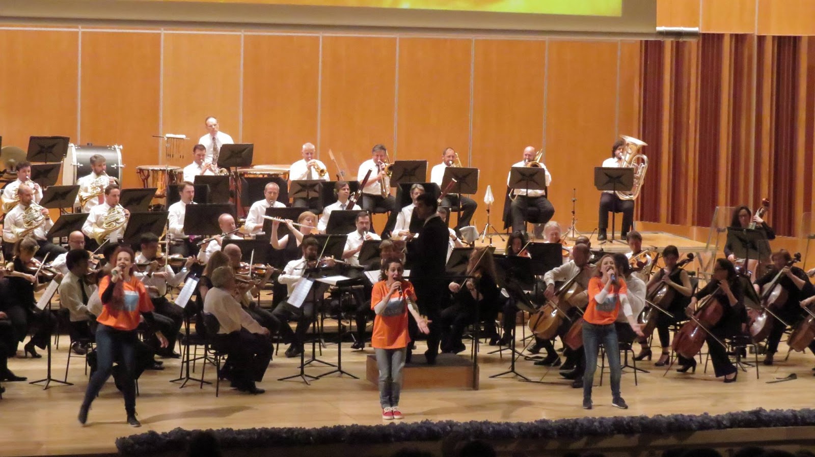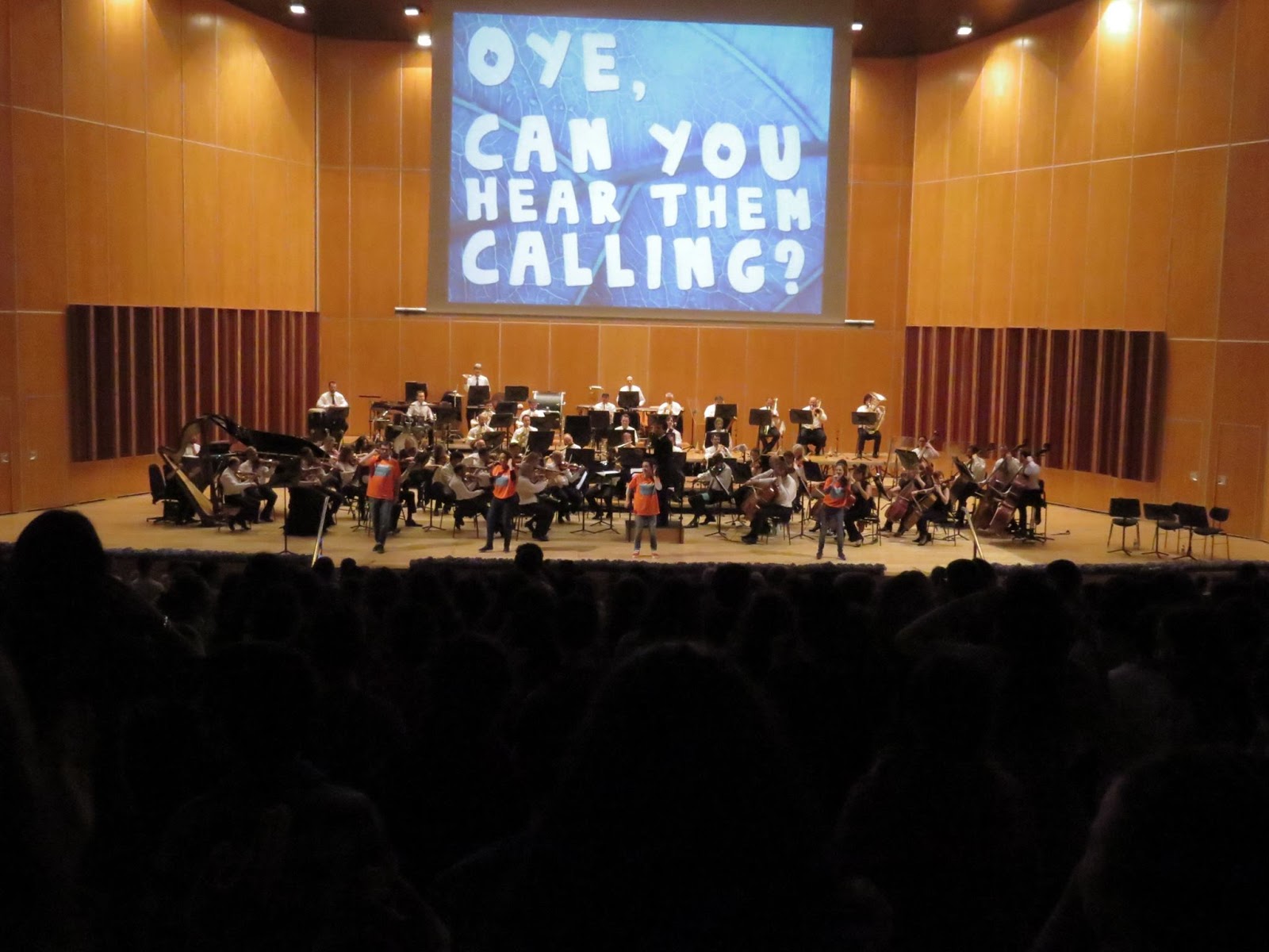 En «La Orquesta Canta» hemos trabajado la Oda a la alegría de Beethoven, el «finale» de El Pájaro de fuego (Stravinsky), el «Largo» de la Sinfonía del «Nuevo Mundo» de Dvorak, uno de los momentos más emocionantes de este segundo programa, con las flautas «robando» protagonismo al corno inglés, además de contenidos musicales creados específicamente como Oye de Jim Papoulis o el Ven a tocar de Thomas Cabaniss, el «himno» de Link Up! que es la única pieza repetida en todos los programas. Añadir Simple Gifts de Brackett o la tradicional Bought Me a Cat y añadimos el inglés a los contenidos (como el francés, el portugués e incluso el latín de años pasados), con dificultades variadas y adaptas al nivel del alumnado.