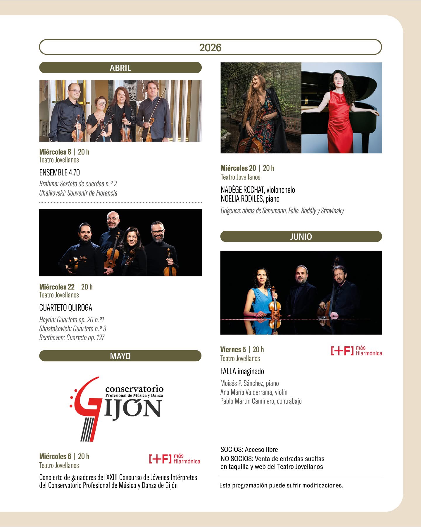 Juan Carlos Chornet (flauta), Miguel Ángel Sánchez Miranda (arpa), Atsuko Neriishi (violín), Hanna Nisonen (viola), Arnaud Dupont (violonchelo), Óscar Sala (trompa).