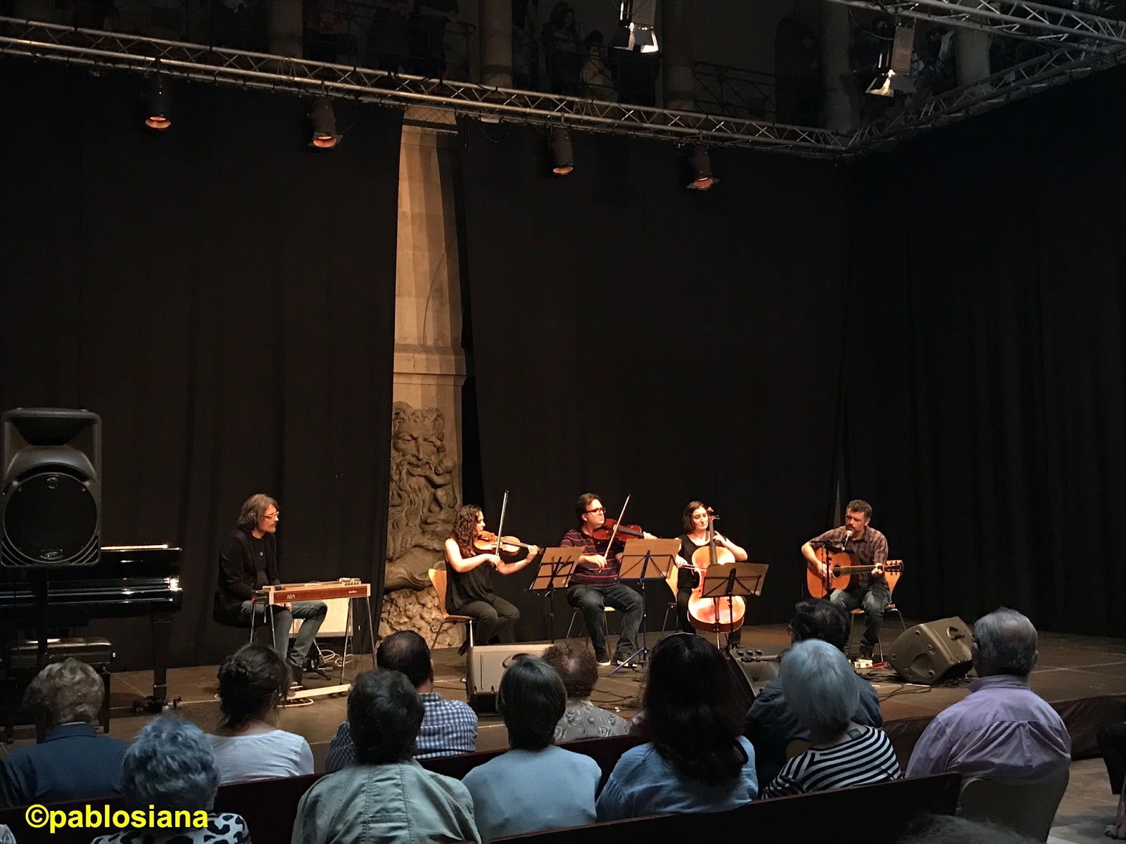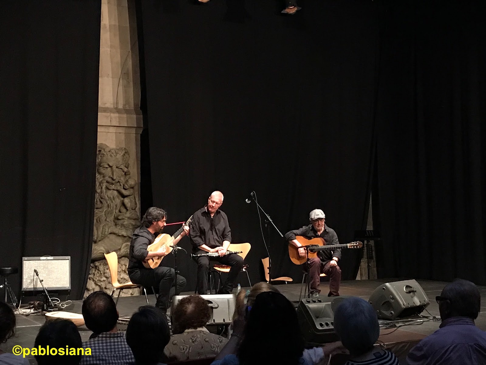 La alternancia de temas nos dejan unas combinaciones plenamente internacionales, instrumentalmente con el cello de Ruth Verona, a quien hace tiempo le cambié el apellido por Zapico (es la “cuarta hermana” de la formación de los langreanos desde los inicios), capaz de emocionarnos en un canto melancólico introductorio alternando con el rítmico de la muñeira de Chantada donde las flautas del astur-leonés Alejandro Villar aportan ese matiz celta (comentado por Ismael con el asentimiento de Lisardo Lombardía (uno más entre el numeroso público asistente). Las músicas que Aarón Zapico recogió, tras consultar con Mael, su hija Sara, Miriam Perandones o Héctor Braga, amalgaman páginas reconocibles por todos los “omnívoros musicales” que siempre tenemos presente lo cercano, «desentrañando las raíces» de unas melodías tan apegadas al terruño. Por supuesto la percusión de Pere Olivé, otro “imprescindible” de Forma Antiqva junto a los tres hermanos (Aarón en el órgano, Dani con la tiorba y Pablo a la guitarra barroca y el archilaúd), redondean el orgánico de este proyecto que patrocinado por la Consejería de Cultura, Política Lingüística y Deporte del Principado de Asturias ya queda para la posteridad de nuestro patrimonio.
