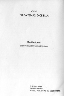 El Círculo Cultural de Valdediós vuelve otro año, y van dos décadas, a sus ciclos, esta vez con el lema «Cómo se puede vivir con la mitad ausente» haciendo referencia a la mujer, también protagonista en este concierto por la presencia de tantas compositoras sin las que nuestra mitad musical se quedaría incompleta. Diego Fernández Magdaleno volvió a interpretar obras de Carme Fernández Vidal (1970), Zulema de la Cruz (1958), Anna Bofill (1944), Encarnación López de Arenosa (1935), Dolores Serrano (1967) o Teresa Catalán (1951) perfectamente emparejadas con sus colegas donde tampoco faltó un estreno, esta vez Tristán e Isolda de Josep Soler (1935) en la parte III.