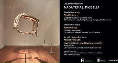 María Bosch en las notas que también dejo aquí, hace referencia a los «programas minuciosamente construídos, que ahondan en la psicología de la escucha«, y cada página forma un bloque que aúna música tonal y atonal con una naturalidad pasmosa. Los Crisantemos de Jesús Legido (1943) ponen luz al Estudio de cluster de Zulema de la Cruz, el cántabro Francisco García Álvarez (1959) hace una hermosísima transcripción de Letania Laurentana compuesta por Nicolás Fernández Arias (1863-1938) que prepara la Terra perduda de Bofill, la Anástasis del propio García Álvarez reencontrando sonoridades y el explosivo Preludio IV de Carlos Cruz de Castro (1941), poesía musical como cuatro versos recitados al piano por ese humanista universal que es Fernández Magdaleno.