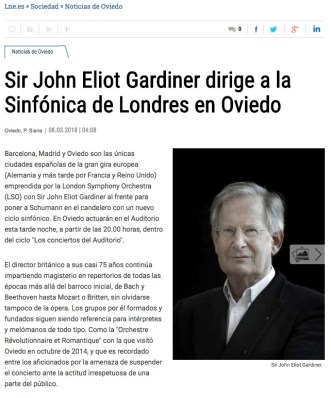 Domingo 26 de octubre, 19:00 horas. Conciertos del Auditorio, Oviedo: Ann Hallenberg (mezzo), Orquesta Revolucionaria y Romántica, Sir John Eliot Gardiner (director). Obras de Beethoven y Berlioz.