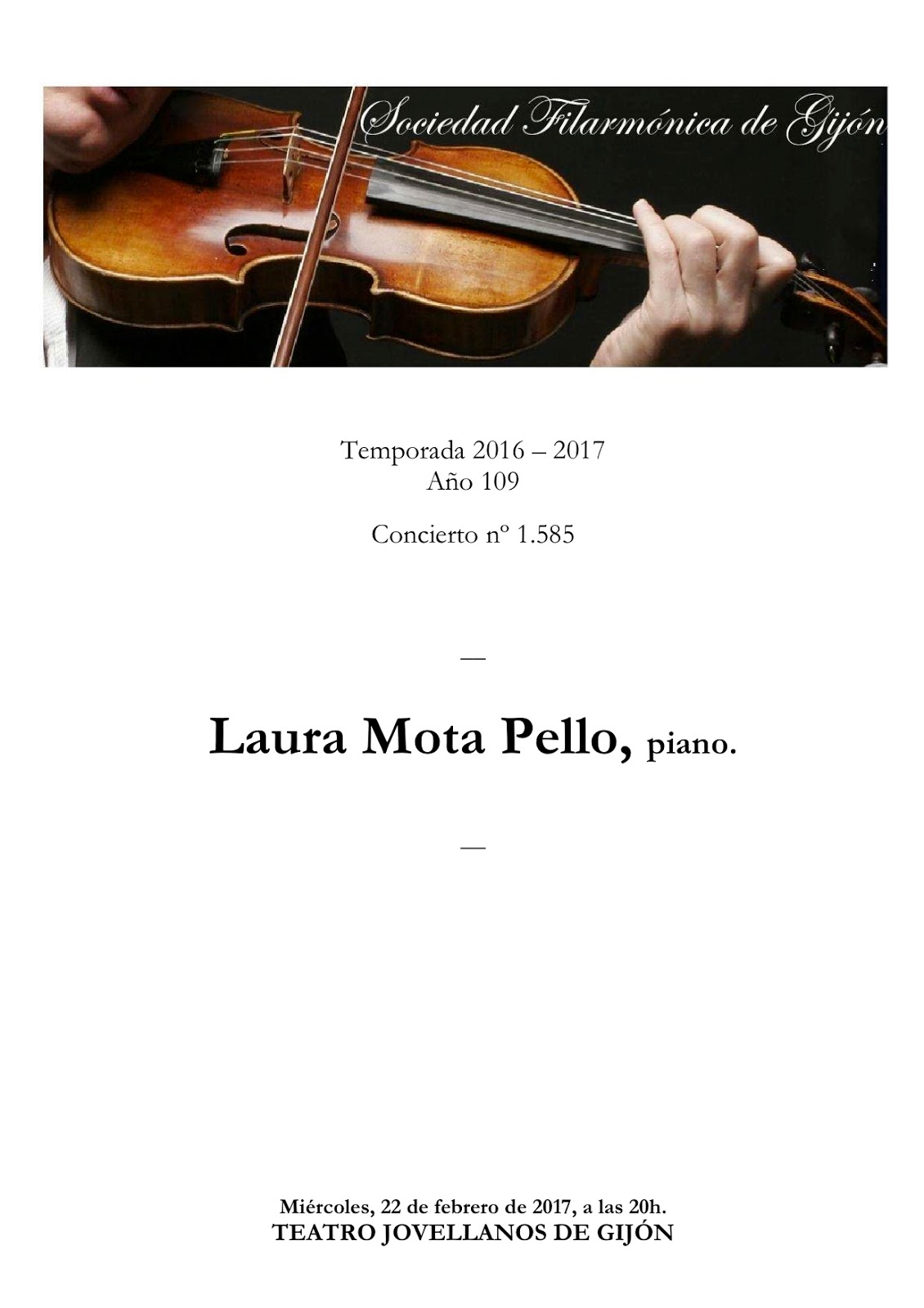 Miércoles 22 de febrero, 20:00 horas. Teatro Jovellanos, Sociedad Filarmónica de Gijón, Año 109, concierto 1585: Laura Mota Pello, piano. Obras de Bach, Beethoven, Nielsen, Liszt, Debussy y Chopin.