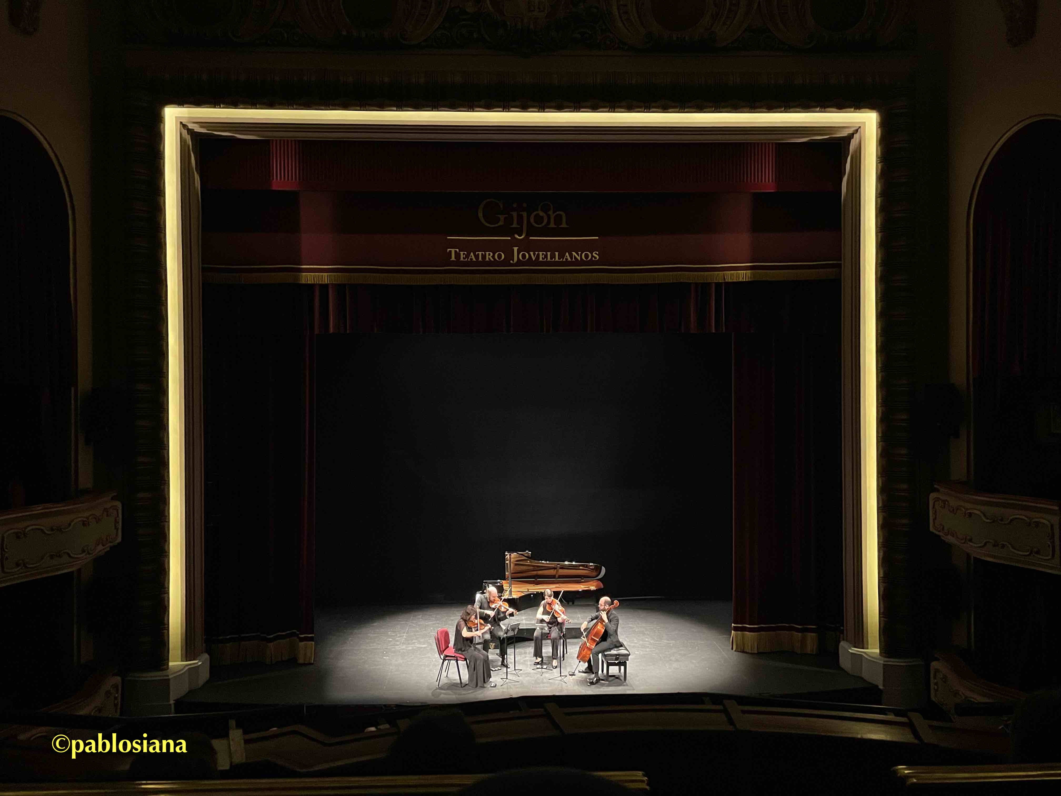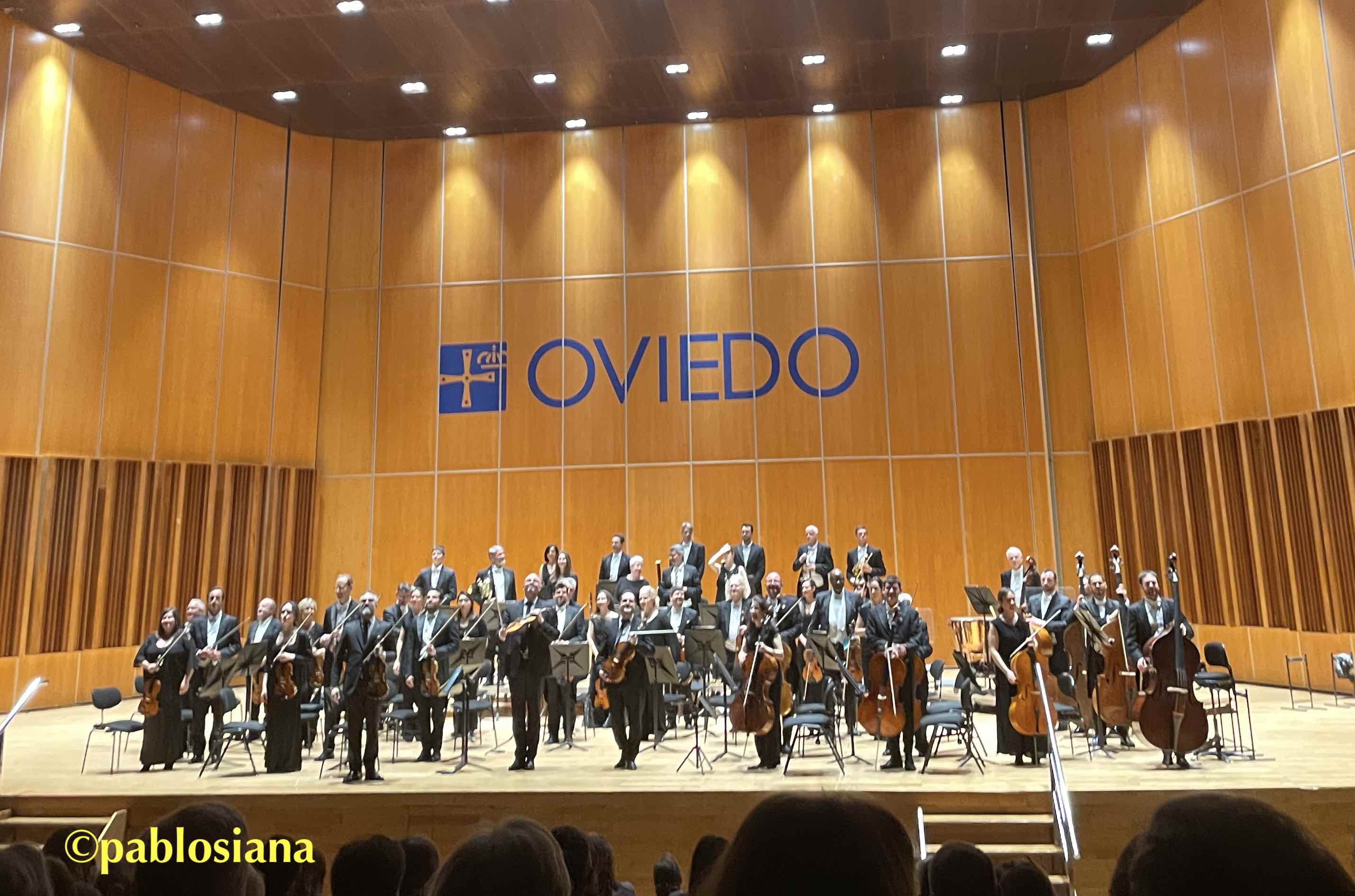 La QuirOSPA aumentó el riesgo para la penúltima sinfonía del «sordo de Bonn», sin complejos, balances cuidados, Hevia por momentos dirigiendo con el arco, Sierra llevando de la mano a los segundos -tan importantes pese al calificativo-, Puchades sacando a flote unas violas con protagonismo y Poggio redondeando junto a los contrabajos una cuerda exigente en los tiempos para la limpieza sonora. El viento añadiría brillo y color a pares, sumando, contestando, fraseando. Los timbales detrás a la derecha mantuvieron el sonido global, homogéneo, romántico sin estridencias y puramente sinfónico. El público de hoy sí entiende el humor socarrón de Don Luis y también las sombras y luces, de nuevo en la tonalidad de fa mayor que antes pintasen para «papá Haydn». Manejar toda la orquesta sin director suponía una atención especial, encajar los latidos y respiraciones, escucharse aún más si es posible, la valentía que puede llevar a la tumba o a la gloria, siendo ésta la meta alcanzada. Con un respeto total a las indicaciones de aire tomadas literalmente, el Allegro vivace con brio pisó el acelerador sin miedo a las curvas, el Allegretto scherzando realmente fue «bromeando» con el metrónomo, por momentos zapateados para afirmar la pulsación, el Tempo di menuetto auténtica filigrana por la delicadeza, para rematar con un Allegro vivace donde la coreografía de arcos enriquecía una interpretación rigurosa, precisa, exquisita, equilibrada, fresca… calificativos que le ha dado The New York Times al Cuarteto Quiroga y que lograron extender a una OSPA feliz, implicada y en plena forma para este final de temporada al que le quedan dos abonos más -de los que perderé el penúltimo- mejor que escribir lo de «le quedan dos telediarios»…