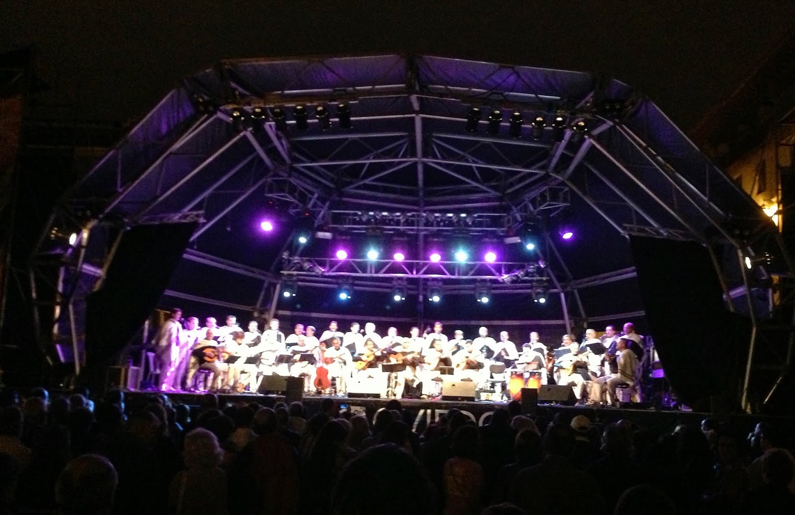 No importa el «orbayu» cuando uno lo pasa muy bien, y de nuevo felicitar al Maestro Conti por sus arriesgadas apuestas, esta vez con música de su tierra y unos músicos napolitanos encabezados por Nando Citarella, que canta (y encanta con un excelente y sentido Non ti scordar di me de De Curtis), anima, baila, lleva la percusión y hasta recordó anécdotas históricas como el enfrentamiento Saboya – Borbón antes de la reunificación italiana), con su formación de instrumentos tradicionales realmente interesantes y cercanos a nuestra tierra, una cantante de voz natural con registros increíbles, y hasta una bailarina que completó el cuadro en un auténtico volcán de calidad, casi todas con el respaldo de nuestra OvFi «todoterreno», aunque amplificada (con lo malo que tiene), en un concierto emotivo para algunos y entretenido para el público que al finalizar todavía continuó en medio de la plaza bailando con estos artistas italianos que transmiten alegría con su música tradicional, meridional y cercana en todos los sentidos.