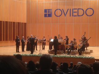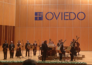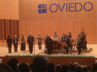 Tarde de domingo con recuerdos en un entorno donde mi abuelo moscón Pachu del Campo trabajó muchos años, y segundo concierto de día tras el matutino de la Banda Sinfónica del Ateneo de Mieres que tengo el honor de presidir, en el día del cumpleaños de Morricone a quien ya homenajeásemos el año pasado, por lo que este le correspondía a John Williams, ambos premiados con el Premio de las Artes. La Fundación Princesa de Asturias organiza en este recuperado espacio multitud de conciertos y eventos en torno a sus premios internacionales y la «Isla Locura» sería el perfecto colofón a un 11 de octubre que tendrá mucho para rememorar (la vuelta del Ateneo tras el 8 de marzo, ganaba Nadal su 13º Roland Garros y «el mi Oviedín» al eterno rival para terminar inmejorablemente este día de La Anormalidad ya asentada).Sobre el montaje «Isla Locura» la propia Fundación lo describe así: «Este espectáculo poético-musical dirigido por Aarón Zapico, pretende simbolizar el hermanamiento de dos grandes tradiciones literarias, la castellana y la anglosajona, representadas en los escritores más importantes de la literatura universal«. Forma Antiqva tiene la virtud de apostar por formatos siempre novedosos, adoptando las mejores formaciones para ellos y nuevamente acertando de lleno con la elección del tenor cordobés Pablo García López para encarnar un particular Alonso Quijano en sillón con lámpara de mesa, rodeado de textos y libros, Cervantes y Shakespeare, declamaciones y canciones en un alarde escénico donde los cinco músicos le arroparon junto a luces bien buscadas y complicidades desde antes del comienzo en un repertorio donde los asturianos siguen siendo un referente (dejo algunas fotos de la FPA en Twitter© que reflejan mejor la lograda escenografía que desde mi posición lateral).