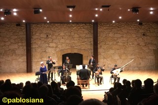 Los compositores como diseños o patrones conocidos comenzando con Andrea Falconieri, O bellissimi capelli junto a las “folías hechas para su señora Doña Tarolilla de Carallenos”, terciopelo con hilo de plata, dúos de violines y flauta cantada sin palabras, tejidos de abrigo previo al gran Monteverdi vestido nupcial, Voglio di vita uscir etéreo con el ‘cuarteto Zapico’, sensual, susurrado, cortando silencios antes de romperlos con atronadores aplausos. Otro tanto el conocido Lamento d’Arianna confeccionado desde la Sinfonía 15 “Dolente partita” (Kapsperger), el taller musical completo, satén y otras calidades en una capa antes de resbalar dejando entrever el juego de la disonancia tensa que resuelve relajada en feliz compañía para descubrir otro monteverdiano Quel sguardo sdegnosetto, improvisaciones sobre la Capona y la Chacona, alfombra roja tejida y teñida con esmero, lentamente, sumando tiorba, guitarra, clave y el último chelo impulsando el pie de Doña Sara para pisar con aplomo, ritmo y elegancia. Misma hechura con la última folía de Merula, veneciana en todo su esplendor como partitura y cantante.
