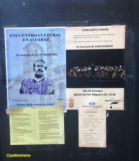 El último fin de semana de octubre nos llevó hasta el pueblo natal de Juan Romero Rodríguez, Pipo para los amigos, Alcaraz bello y manchego que le honraba con una serie de actos donde no faltó la música, siempre presente en su vida, inculcada a sus hijas Alba y Juana que han estudiado cello y piano participando en cada momento del encuentro -y éste era uno de los imprescindibles, ni la poesía, por supuesto con buenas viandas y caldos de la tierra sobre la mesa alrededor de la cual todo fluye mejor, sin olvidarse de las tertulias, pues Pipo Romero junto a Gloria Aguinaga, su fiel esposa, amiga y colega, son personas a las que siempre les gustó hablar pero sobre todo escuchar, tal vez por «deformación profesional» de psicólogos.