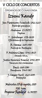 De nuevo protagonista Valdediós y su órgano, otro de los Bienes de Interés Cultural del Principado, instrumento barroco datado en 1713 y restaurado por el taller de G. Grenzing en 1988 fiel al original donde destaca no ya el sonido sino toda su fachada con los ángeles músicos que son portada del libro «El órgano en el Principado de Asturias» de María Sanhuesa, Susana G. Lastra y Enrique Campuzano, publicado por la Fundación Cardín que continúa por décimo año con este ciclo veraniego imprescindible para mantener en funcionamiento esta joya de nuestro patrimonio cuyo primer enemigo es la humedad de Valdediós (el segundo, aún mayor y más peligroso es la desidia política hacia la música).