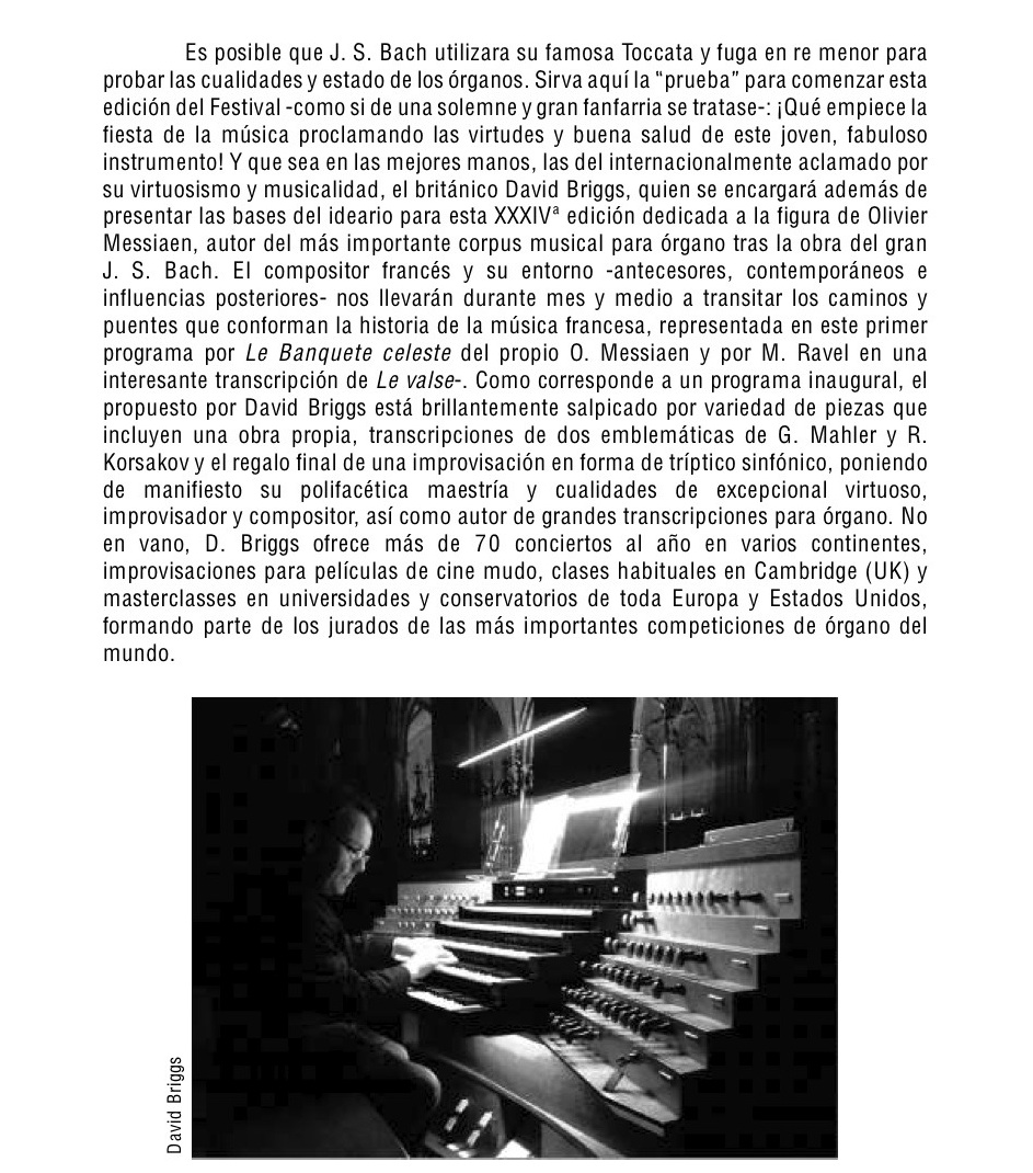 Interesante también poder escuchar por vez primera en España el Mephisto Waltz nº 1 (S. 514) de Franz Liszt, rebosante y desbordante transcripción del organista afincado en EE.UU. para el instrumento rey que descubre ambientes propios que no se encuentran ni en la versión de piano ni siquiera en la orquestal. Virtuosismo en dedos y pies, inteligencia innata para buscar registros y jugar con ellos construyendo un lenguaje organístico que asombra allá donde lo interpreta, y al fin en su tierra nada menos que con el KLAIS que continúa descubriéndonos tubos y combinaciones cada día. Precisión, perfección y búsqueda constante en esta recreación que no vende el alma al diablo, guiños cómicos, literatura hecha sonido, crisol tímbrico y banda sonora mentando en el templo al innombrable por parte del redimido abate húngaro revestido de magnificencia catedralicia en las manos (y pies) de Raúl Prieto.