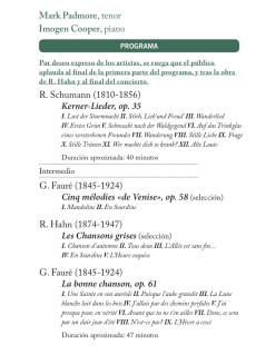 Pero había que desatar ese nudo en el estómago tras tantas emociones transmitidas por Appl–Baillieu, un canto que creció en la segunda parte con el piano siempre compartiendo protagonismo, y nada mejor que La trucha saltarina y dorada en el río, «recreación de los maestros«, o un brindis al maestro donde el canto «ebrio» de Schumann (de Dichterliebe, Op. 48, el nº 11 «Ein Jüngling liebt ein Mädchen») nos devolvió la alegría de saber que el Lied sigue vivo gracias a una pedagogía musical que caló en el alumno aventajado que se convertiría en amigo y terminó siendo mentor, encontrando otro caminante al piano con quien proseguir un viaje que no tiene más destino que hacernos disfrutar.