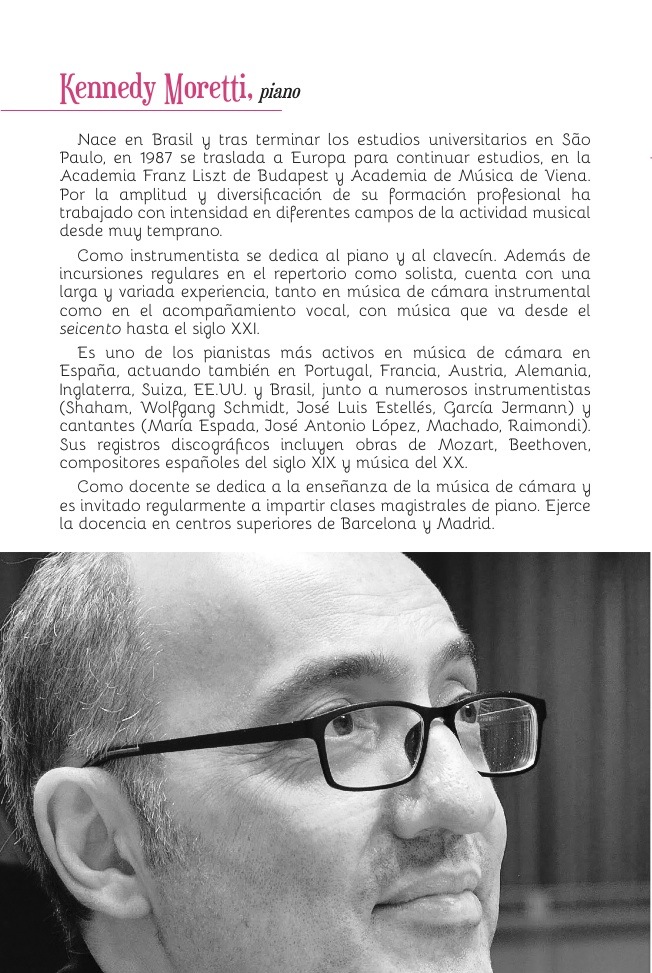 No podía faltar como cierre en un recital de lieder el gran Schubert con su Auf dem Strom D. 943 (más que «En el río» sería «En la corriente», como bien explicó Marina Pardo antes de la interpretación), intenso vocalmente, vibrante al piano y las pinceladas melódicas de una trompa que mantuvo el balance para disfrutar esta obra con la única «licencia» de bajarla de tono pero sin perder ni un ápice de la expresividad más allá de la armadura original o la dificultad instrumental que permitió brillar la redondez de la mezzo (o contralto) que en estos casos no es cuestión de tesitura sino de color y proyección unido a una articulación ideal para el genio del lied en alemán.