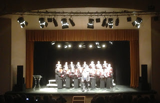 Como la flor (Eduardo Martínez Torner), hermosa canción asturiana que sigue presente con el paso de los años en los distintos coros de mi tierra, el son cubano Las cuatro palomas (I. Piñeiro) con un acertado acompañamiento de cajón peruano, la popular mexicana Borrachita, buscando arreglos y repertorios que dinamicen el mundo coral, como un buen arreglo del famoso bolero Piel canela (Bobby Capo) también con la percusión del mal llamado cajón flamenco que resultó de lo mejor, la poco agradecida Dime paxarín parleru (Ángel Émbil) algo «destemplada» que siempre pone a prueba formaciones, solistas y directores, cerrando intervención la canción africana popularizada por el cine The Lions Sleeps Tonight nuevamente con cajón más abundantes efectos vocales emulando la fauna y sonoridad de la selva realmente conseguidos que salvó una actuación discreta.