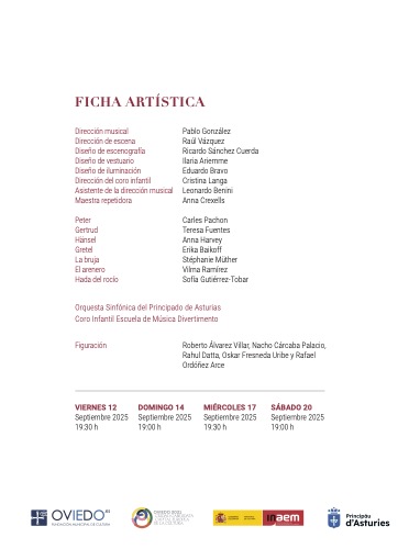 Dirección musical: Óliver Díaz – Dirección de escena: Susana Gómez – Diseño de escenografía: Ricardo Sánchez Cuerda – Diseño de vestuario: Gabriela Salaverri – Diseño de iluminación: Félix Garma – Vídeo: Rubén Ráyen – Dirección del coro: Pablo Moras.