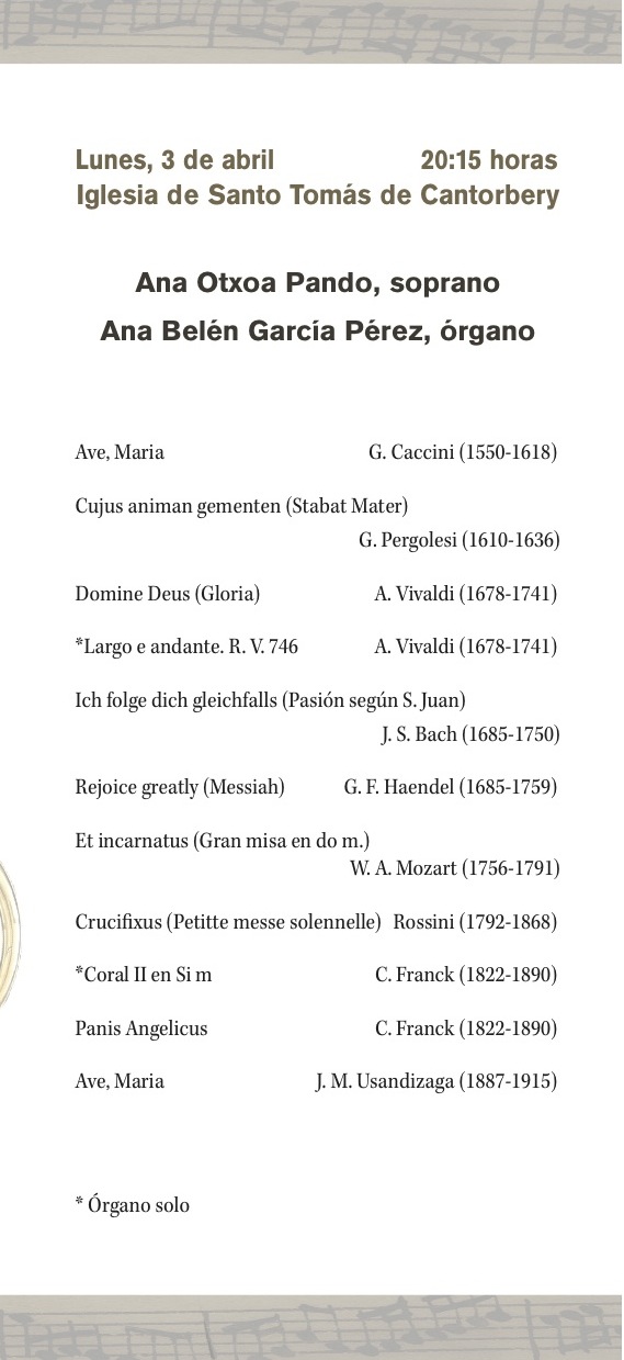 Uno de los grandes compositores de ópera como Rossini no dudaría en acercarse a la música sacra como «un pecado de vejez» y su «Petite Messe Solennelle» es una de esas joyas de las que el O salutaris (que no suele formar parte de la Misa) resulta ideal para el lucimiento de las sopranos incluso solo con piano. Hubiese sido una solución mantener todo el programa en ese formato de recital pero la apuesta por el órgano no creo haya sido la opción correcta pese a la belleza de las obras.