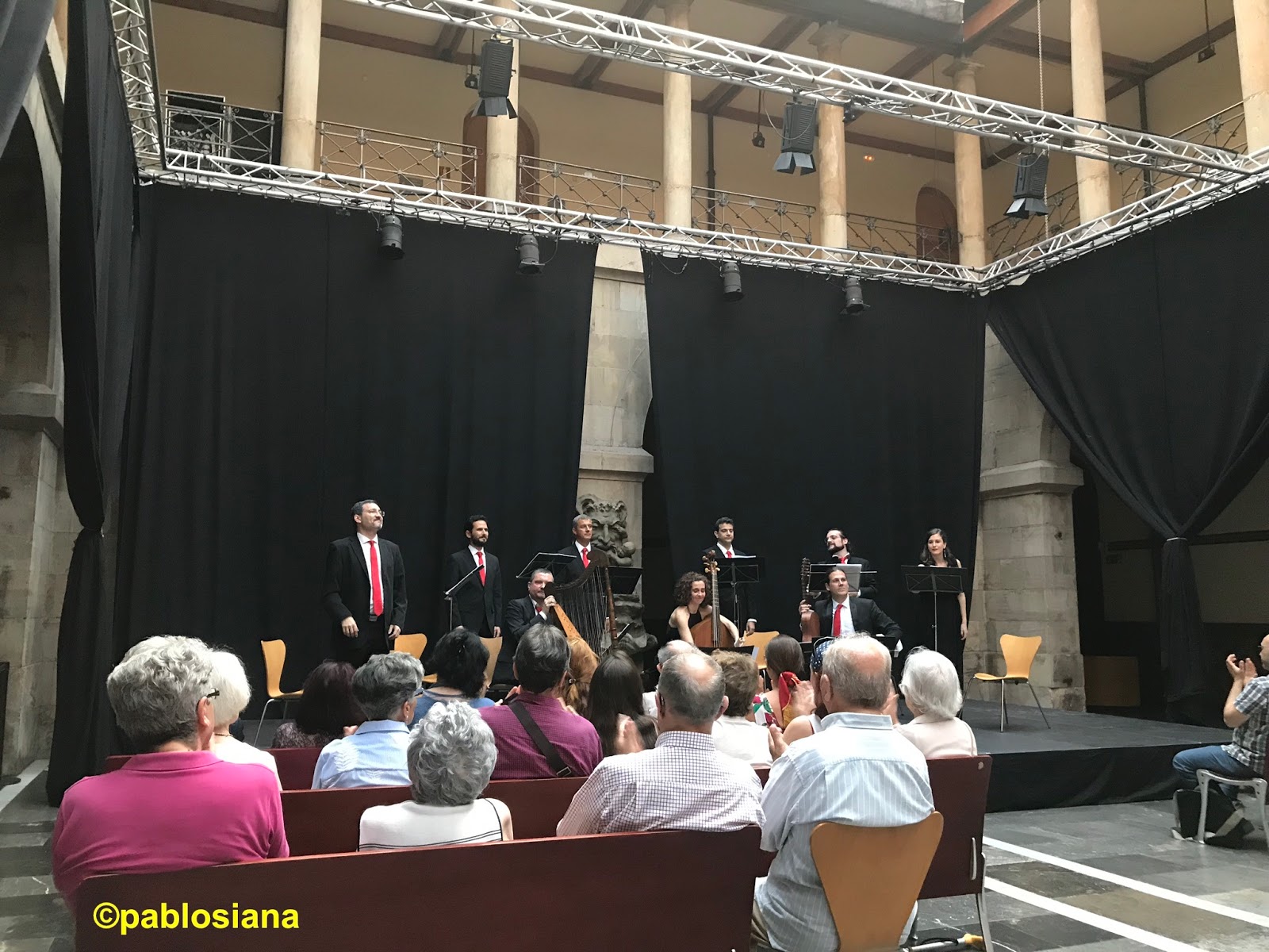 Hacía unos veranos que no me escapaba al festival gijonés que sigue siendo cita obligada en el inicio estival de la capital de la Costa Verde, alcanzando ya su vigésimoprimera edición, bajo la dirección de Eduardo García-Salueña que presentó el concierto, con una quincena completa de actividades que incluyen conciertos, charlas y encuentros a cargo de la JAM Asturias, masterclass, cursos, talleres, Antiqva rural o el Peque Festival Antiqvo, sin olvidarnos del concurso internacional ya en su séptima edición, para formaciones que buscan hacerse un hueco en este mundo de la llamada «Música antigua» ganando cada vez más adeptos en este renacer, como volvió a comprobarse en el patio del Antiguo Instituto Jovellanos en este segundo concierto tras el inaugural de Lina Tur Bonet con MUSIca ALcheMIca dedicado a Corelli al que me hubiese gustado estar, pero quería sacarme la espina con el grupo del asturiano Nacho Rodríguez tras el «pinchazo» con Monteverdi, Schutz y Oniria en la primavera ovetense, siempre apostando por formaciones y solistas de calidad desde sus inicios y asentándose en el difícil calendario de festivales de verano.
