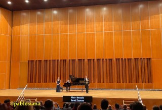 No quiero dejar de citar otras obras como las Cuatro canciones sefardíes (1965) de Joaquín Rodrigo por Lola Fernández y Manuel Burgueras, una mezzo a la que que hacía años no escuchaba pero que sigue teniendo un registro amplio y potente con una musicalidad que nunca se pierde, la Chanson du printemps, opus 28 (Andreas Johann Lorenz Oechsner) para soprano, violín y piano, María Heres de timbre agradable, potencia y gusto, María Mirto Smith Ayuso perfecto sonido y coprotagonismo más un Alfonso Peñarroya al que seguiremos de cerca como pianista repertorista más que acompañante. También original propuesta la que iniciaba el concierto Tutto che il mondo serra (Bottesini) para soprano, contrabajo y piano con Ana Peinado, Roberto Norniella que luchó por afinar el instrumento virtuoso del compositor y el magisterio de Burgueras con estos alumnos.